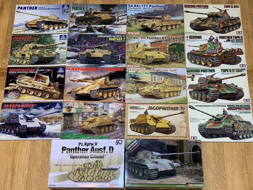 판터 1/35도 그동안 외국 키트로 채워야했죠. 90년대 이탈레리에서 전기형을 타미야에서 신금형으로 후기형을 내놨고 드래곤은 이탈레리 차체로 F형이나 판터2까지 찍어내다 2000년대 향상된 기술로 D,A형을 내놨습니다. 아카데미 재포장 즈베즈다 D형은 가동식 궤도가 인상적이더군오.