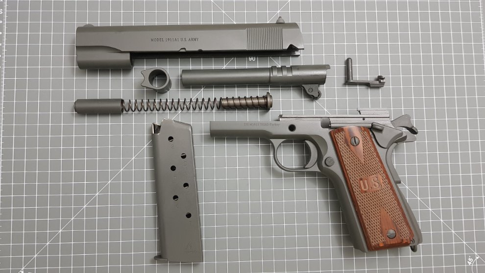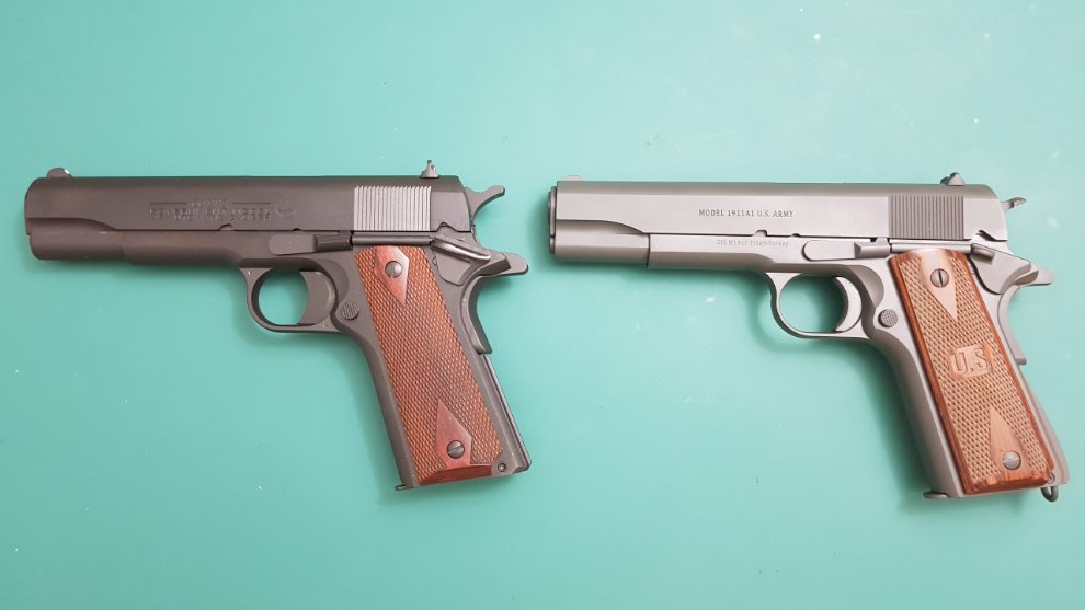 Colt 1991과의 비교샷입니다. 회사만 다를뿐 기본적으로 동일한 총으로 모델만 약간 다릅니다. 오히려 Tisas 1911이 방아쇠폭도 좁고 Lanyard loop도 있고 그립뒤쪽도 둥그런게 우리에게 익숙한 오리지널 1911에 더 가깝습니다.