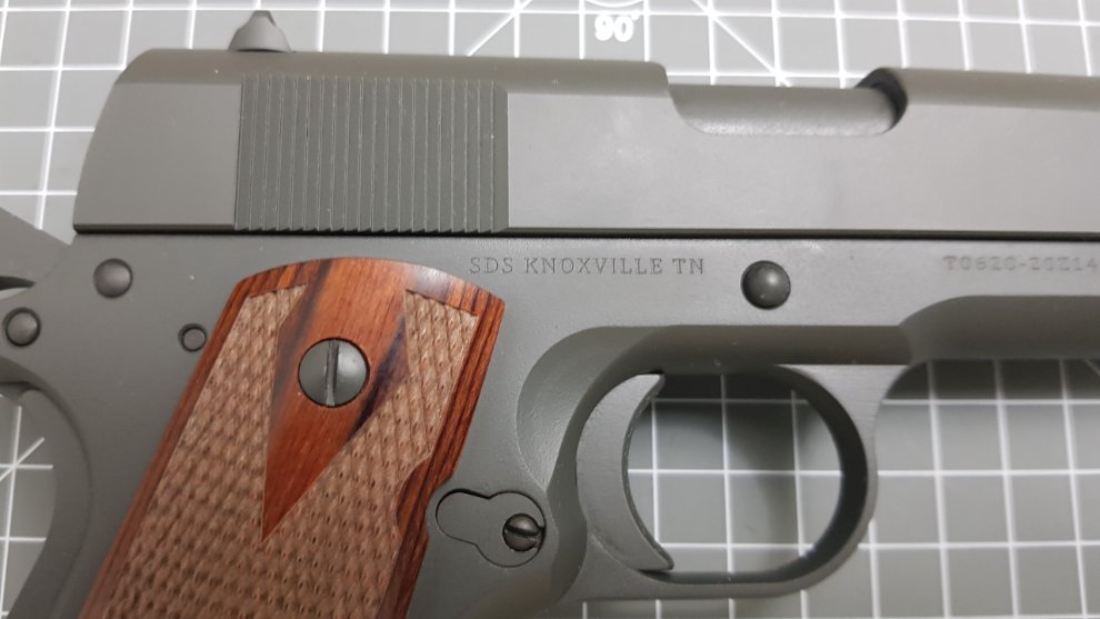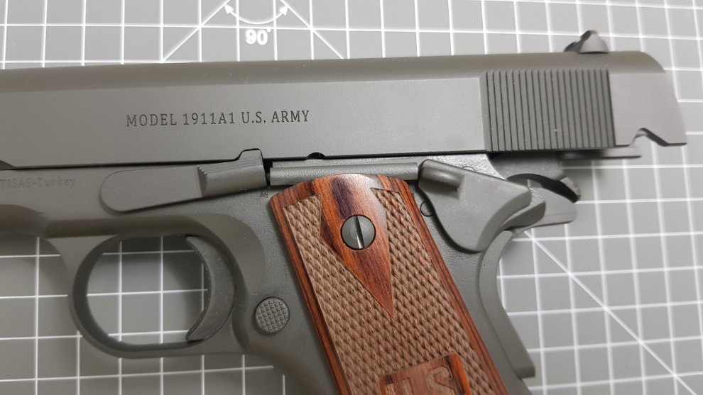 Colt 1991와는 달리 로고도 없고 글자도 작은데 각인이 흠잡을데 없이 깨끗하고 글꼴도 마음에 듭니다. 지금보니 스라이드멈치 도색이 매끈하지 않네요. 뭐 이정도는 애교로 봐줍니다.