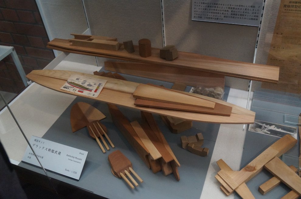 1/200 나무 무사시 모형. 타미야제입니다. 이 시절 나무모형은 대충 부품 비슷한 나무토막을 주고 나머지는 깎아서 만들라는 물건이 대부분이었습니다. 그러니 형태는 물론 디테일까지 새겨져있는 프라모델의 등장이 그 시절 모델러들에게 얼마나 큰 충격이었을까요?