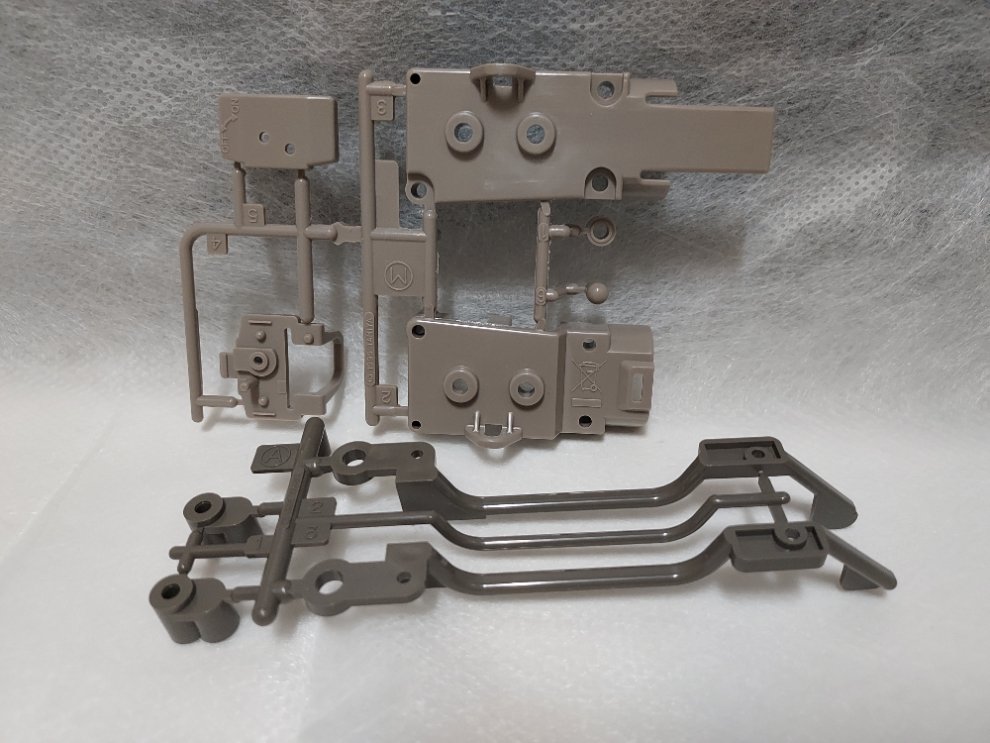 ABS수지로 보여지는 기어박스 바디와 연결막대 등의 파츠