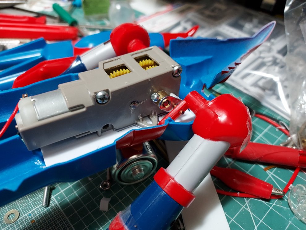 평소 모터라이즈 를 조금 다뤄봤고 또 좋아하는 장르다 보니 기어박스 를 부착해주고 보행이 가능하게 작업하고 있습니다.