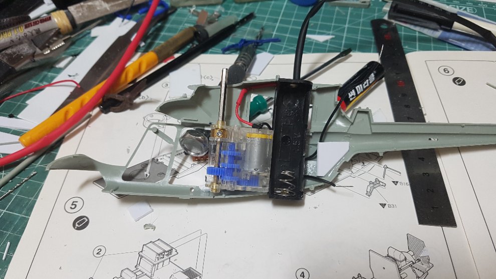 소형기어박스와 건전지 박스 부착후 모습입니다.
