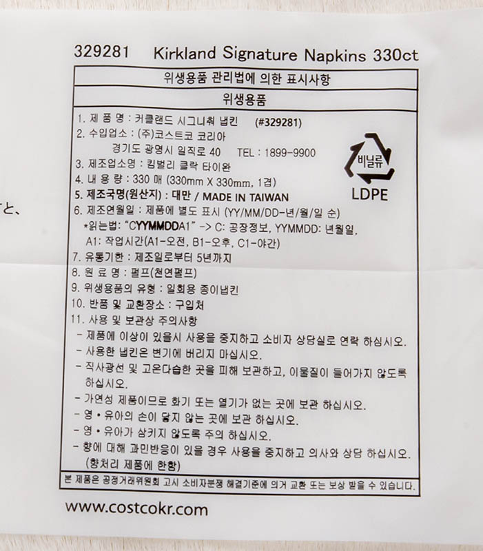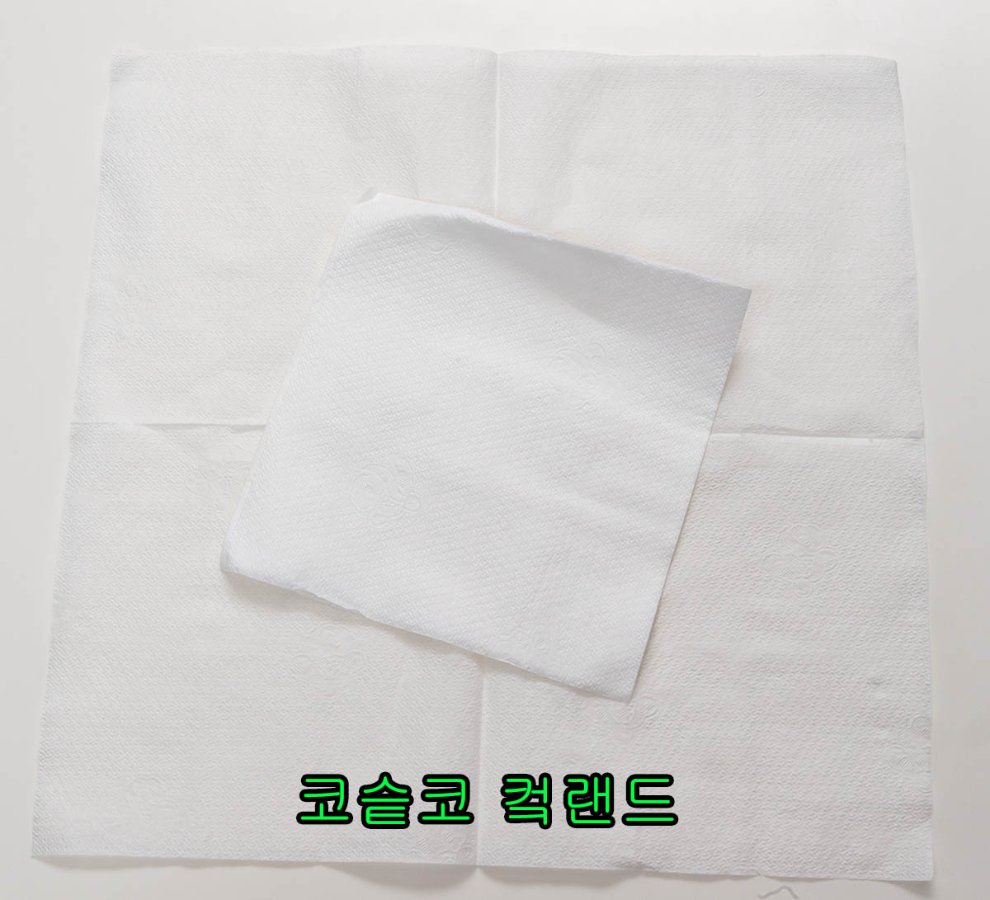 기존에 쓰던 냅킨은 코스트코 커클랜드입니다. 나름 먼지없는 냅킨을 찾아 이것저것 쓰다가 가장 만족해하며 쓰고 있는 제품이죠. 가격은 카툰당 330매/4카툰으로 2.2만원이며, 장당 16원으로 킴테크보다 약간 더 비쌉니다.