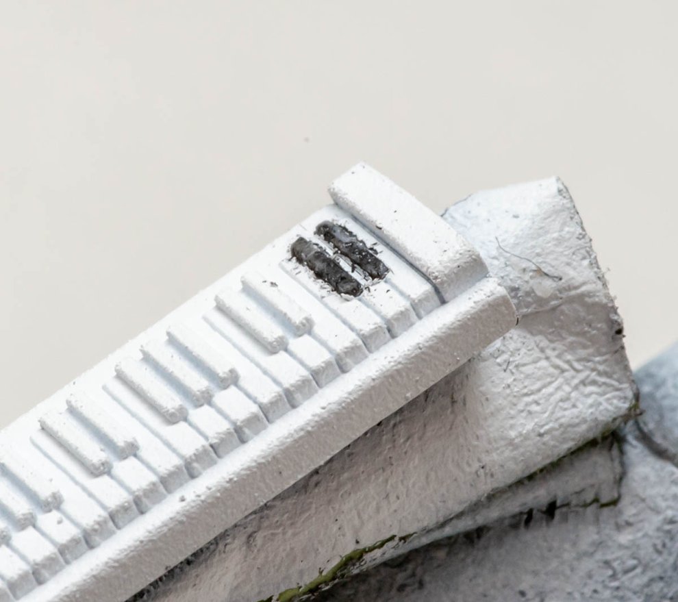 해외의 작례대로 먼저 락카 (저는 흑색 프라이머) 로 깔은 후, 필름처럼 벗겨낼 수 있는 아크릴 흰색으로 입힌 후에 아트나이프로 윤곽선을 오려서 사각사각 흰색 도장면만 도려내는 중인데... 보다시피 난이도가 장난아닙니다; 벌써 안쪽 락카 흑색도장까지 까버려서 그 밑의 회색 플라스틱까지 보이네요. (실제 눈으로 보면 그럭저럭 괜찮습니다만)