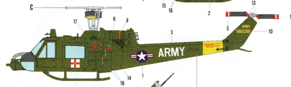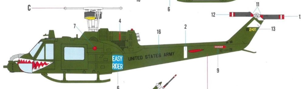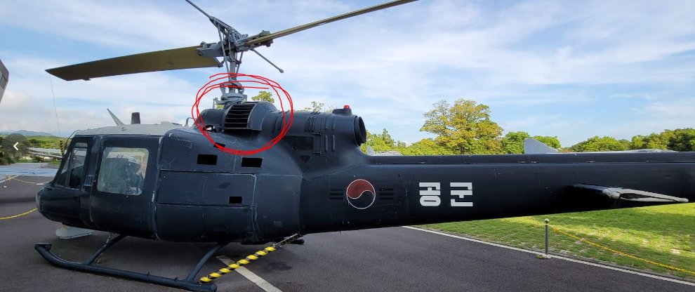요놈을 만들고자 키트들을 찾아보고 있는데 엔진 카울(?) (빨간원) 부분이 UH-1B 키트와 다르더군요...
