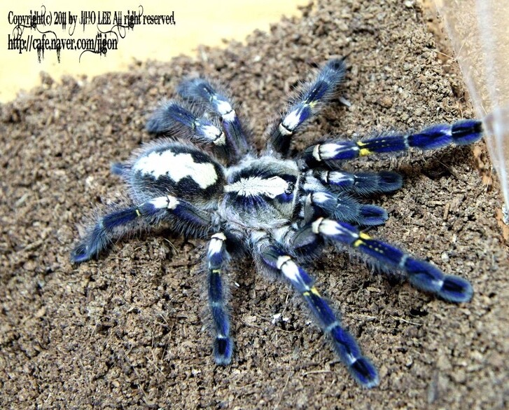 타란튤라들은 대부분 어두운 색이지만 이 구티 오너멘탈 이 녀석의 사파이어 발색은 정말 아름답긴 합니다