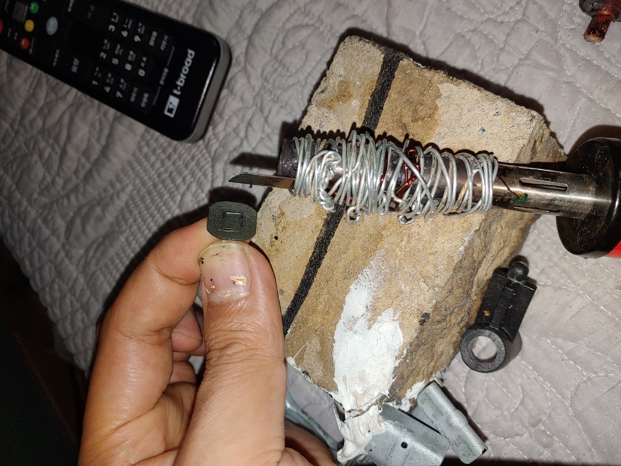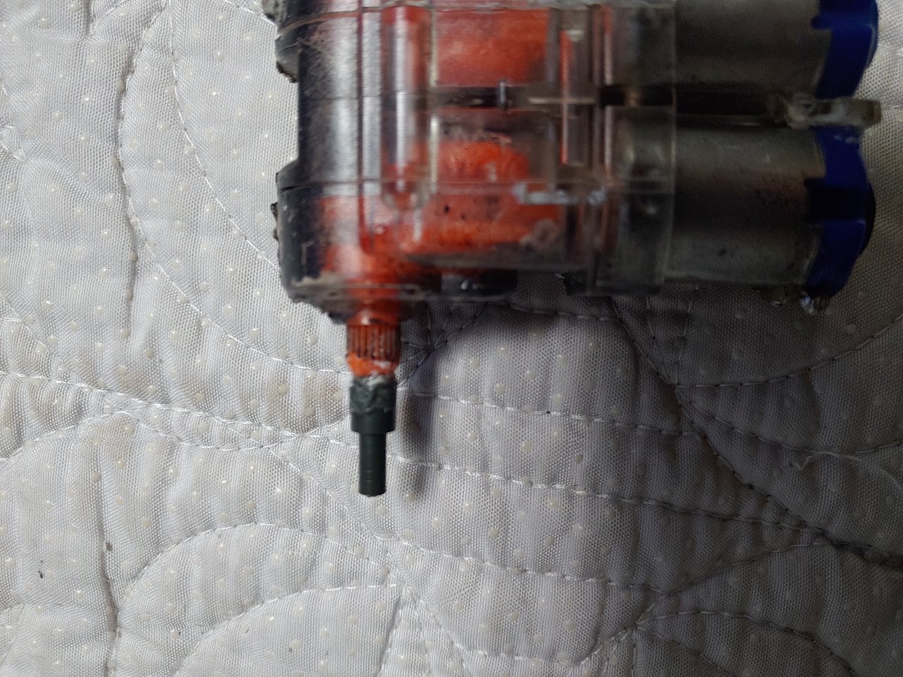 기어박스에 핸드드릴로 정확히 가운데에 구멍을내고 프라봉을 심어줍니다.축도 구멍을내서 프라봉심은뒤 아랫사진처럼 같이 붙여줍니다.