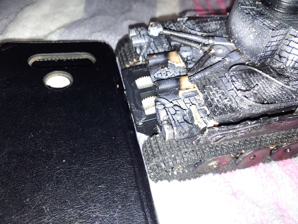 앞뒤를 바꿨습니다 이유는 앞쪽에 기어박스가 궤도가 닿기전 장애물에 걸려 올라가지 않기 때문 입니다.