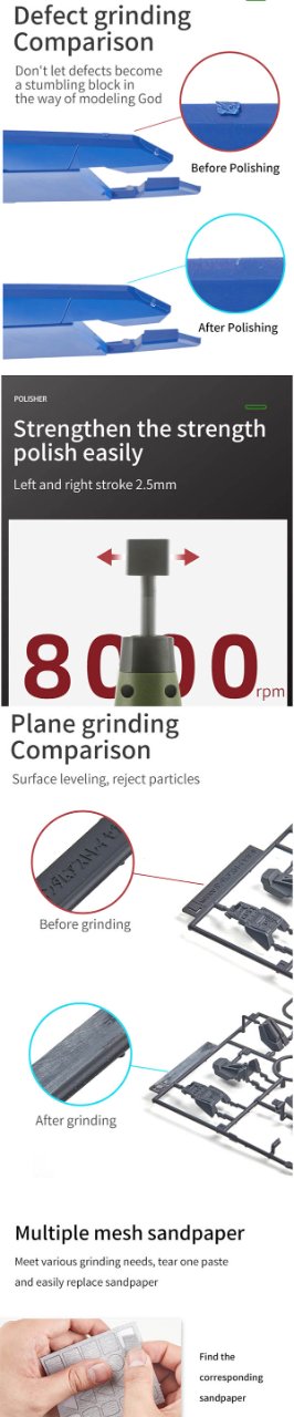 지금 접합선이라든지 몰드라인 수정에 2000방 스펀지 사포로 작업하느라 힘든데, 이런 전동공구를 쓰면 편할 것 같네요.