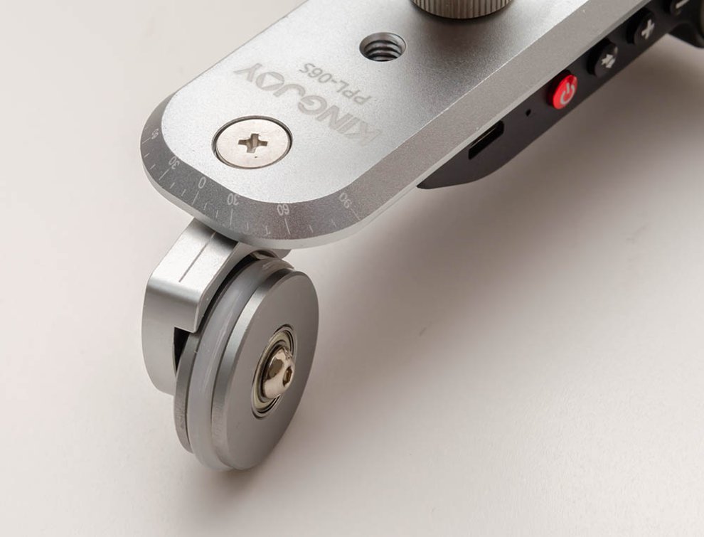 이 장비의 한계는 모터가 약해서 등판 능력이 전혀 없다는 것에서 비롯됩니다. 완전한 평지에서만 작동하며, 조금이라도 각도가 올라가면 전혀 못 올라가기 때문이죠. 따라서 수평 패닝샷이 아닌 수직 패닝샷 (위아래 방향) 을 찍으려면 위 사진과 같은 보다 전문적인 영상 장비를 구입해야 합니다.