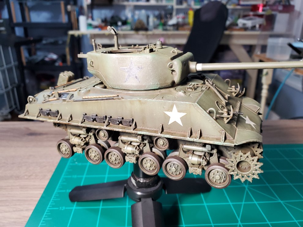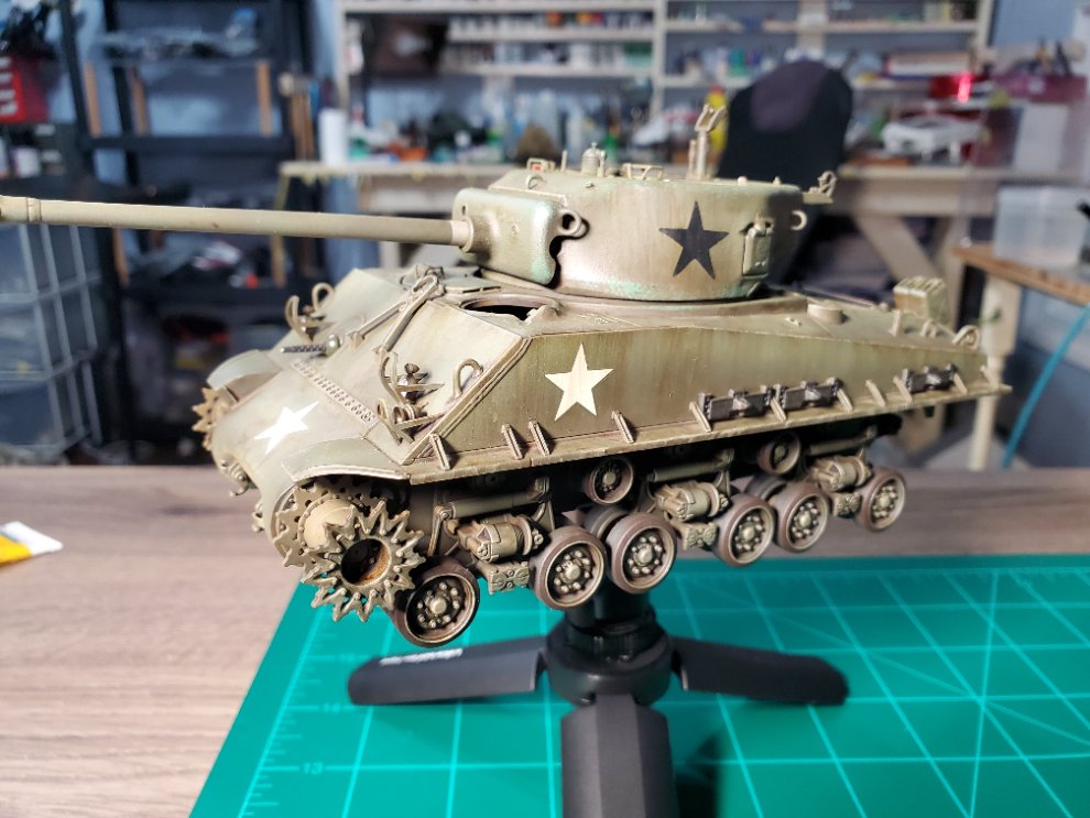하지만 타미야 셔먼은 약간 더 디테일 하게 만드는게 요즘 기준에 맞지않나 생각도 드네요. 가령 헤드라이트 가드는 금형한계상 에칭으로 해주는게 더 낫지 않았나 생각이 들더군요. 다른 메이커에서는 이걸 에칭으로 넣어주는게 거의 기본이 됐죠.