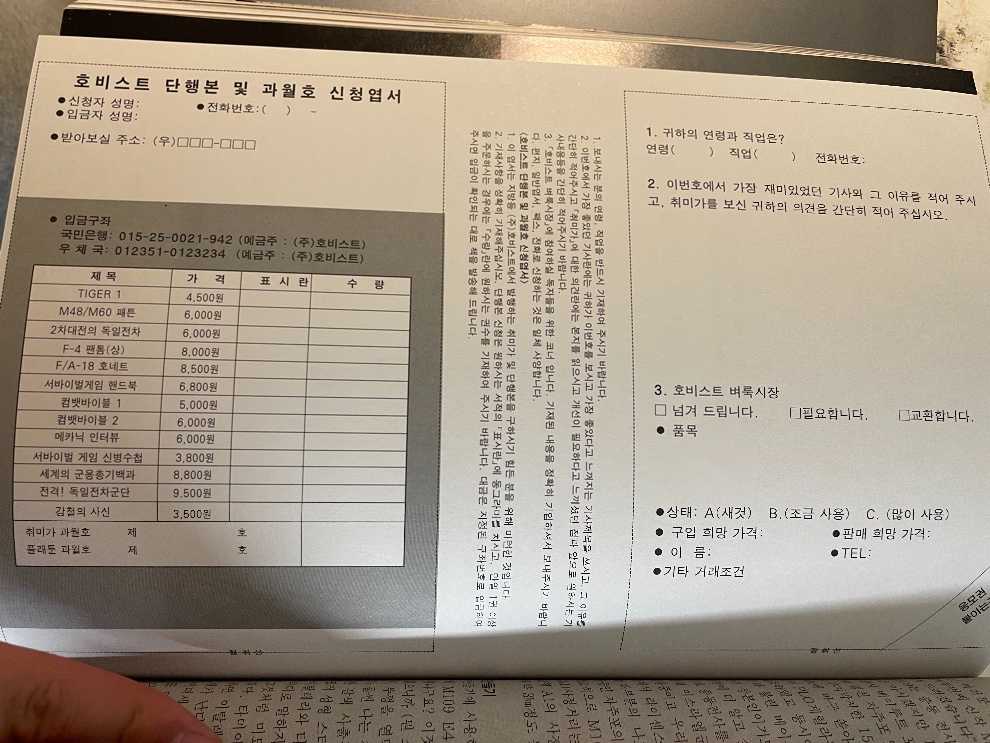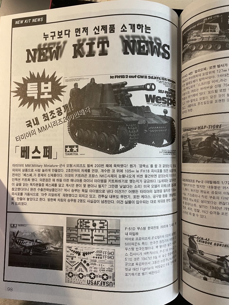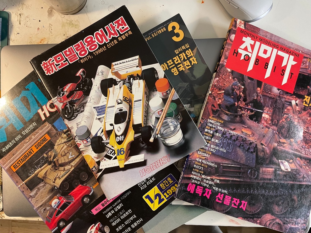 옛날에 아버지가 모형 좀 만드셨다는 친구가 91~96년도에 나온 취미가 잡지를 줬습니다 ㅎ 세월이 많이 흐른 책 치곤 상태가 매우 좋더군요 옛날 잡지 구성도 엄청난거 같아요. 모델링 팁 디오라마 팁 신제품 정보 세계2차대전 스토리 에이스 파일럿 이야기 등등 읽을게 많아요 지금도 이런 잡지가 나오면 좋을텐데 너무 아쉽네요