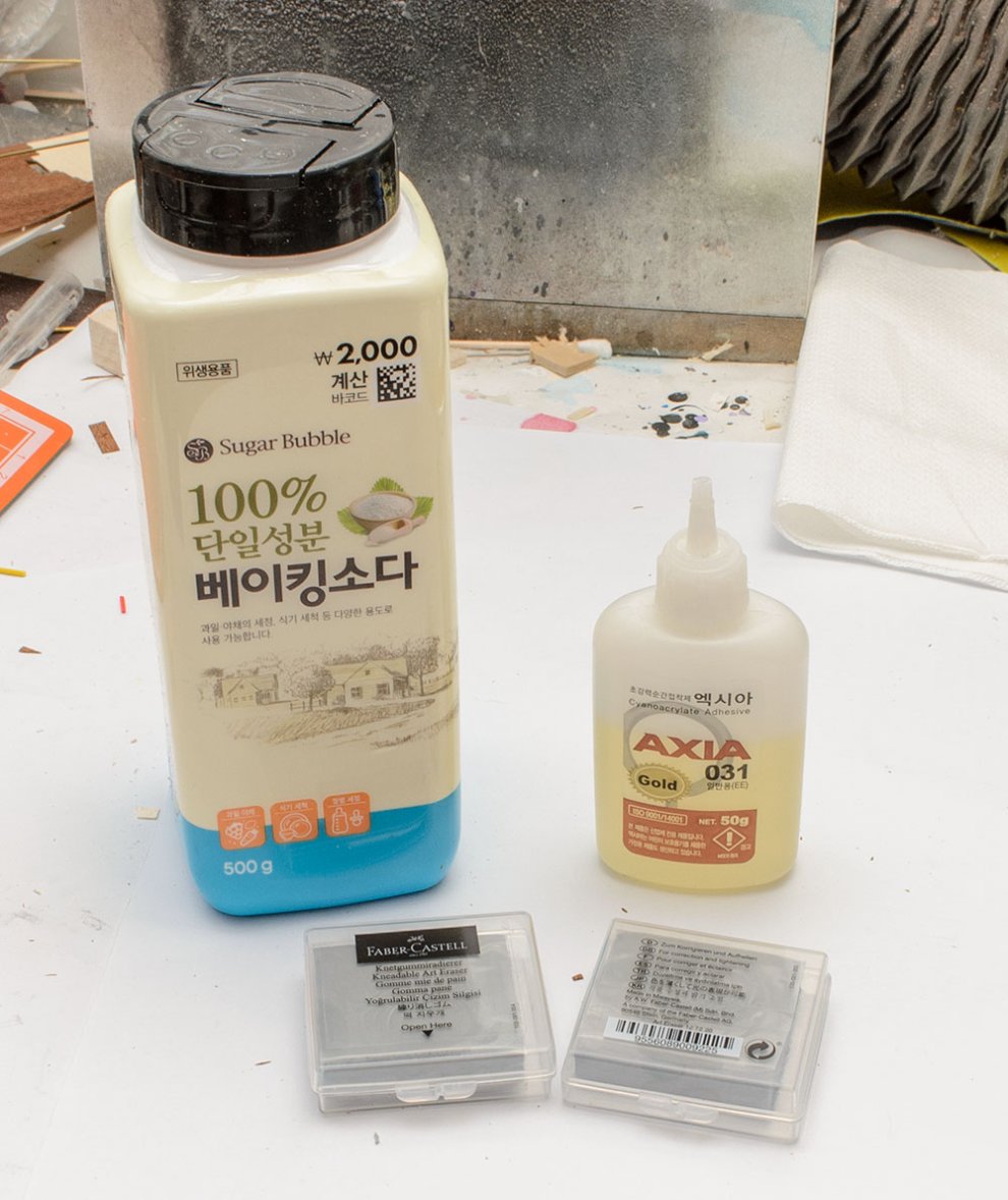 보통 순접에 가루가 고운 베이킹소다, 그리고 화방넷에서 구입한 떡지우개입니다.