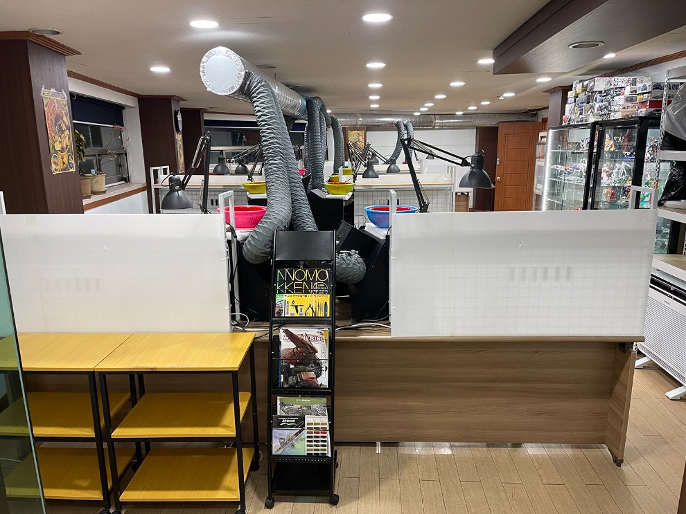 전좌석 동일하게 스프레이 부스와 콤프레서가 비치되어있어서 편안하게 작업하실수 있게 꾸며놨습니다.