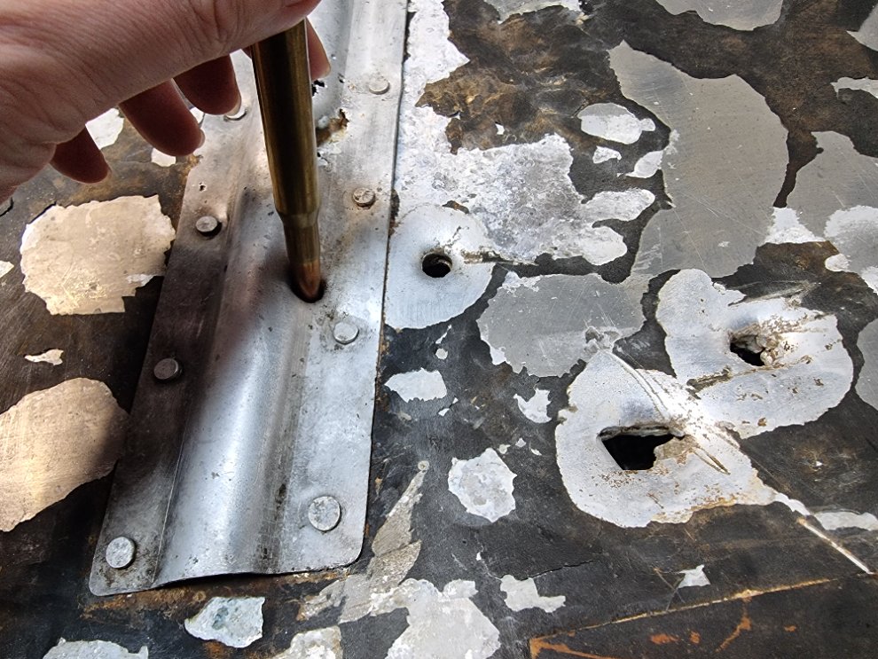 탄흔에 7.62mm 탄이 정확히 일치하네요. 역시 알루미늄 부위만 관통되어 있고 장갑부위는 흔적만 남아있네요.