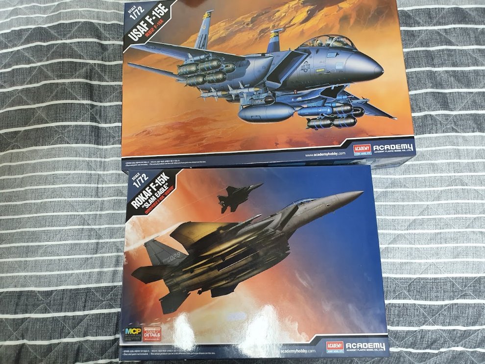아카데미 1/72 F-15E(구판)과 1/72 (신판)F-15K을 샀습니다. 구수한 맛이 느껴지는 옛날 박스 아트가 그려진 요즘 상자를 보니 뭔가 기분이 묘하네요.