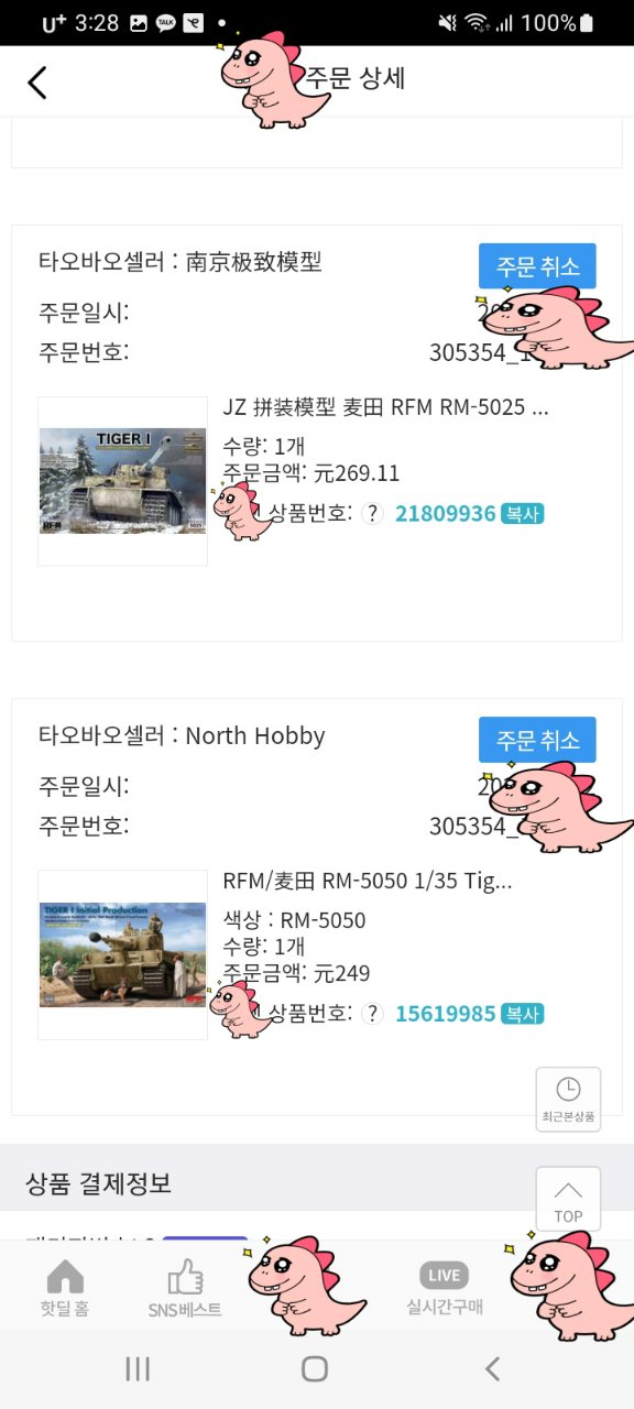 AFV키트들을 여럿 구매해 봤습니다 구매해 본 결과, 국내 중제 프라모델 수입상(상단) 가격은 비정상적이라는 결론이네요