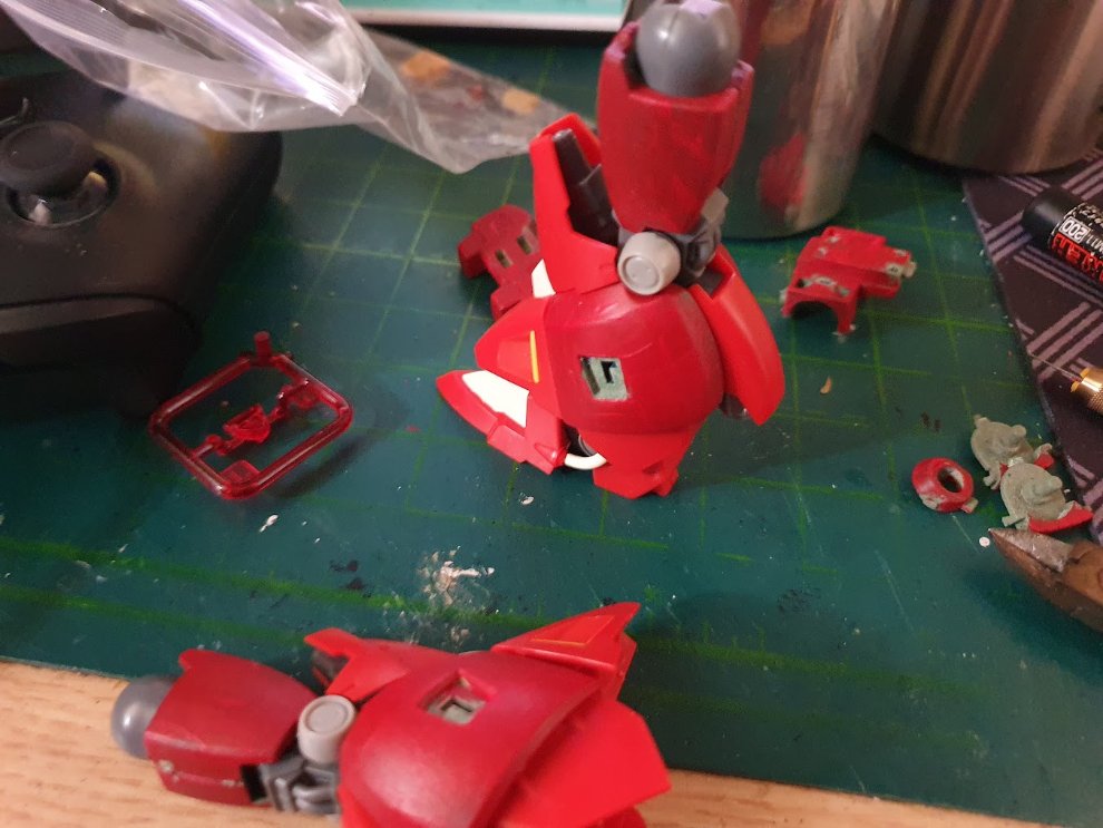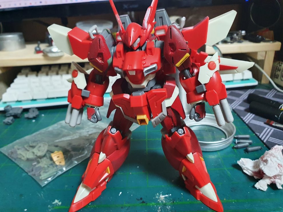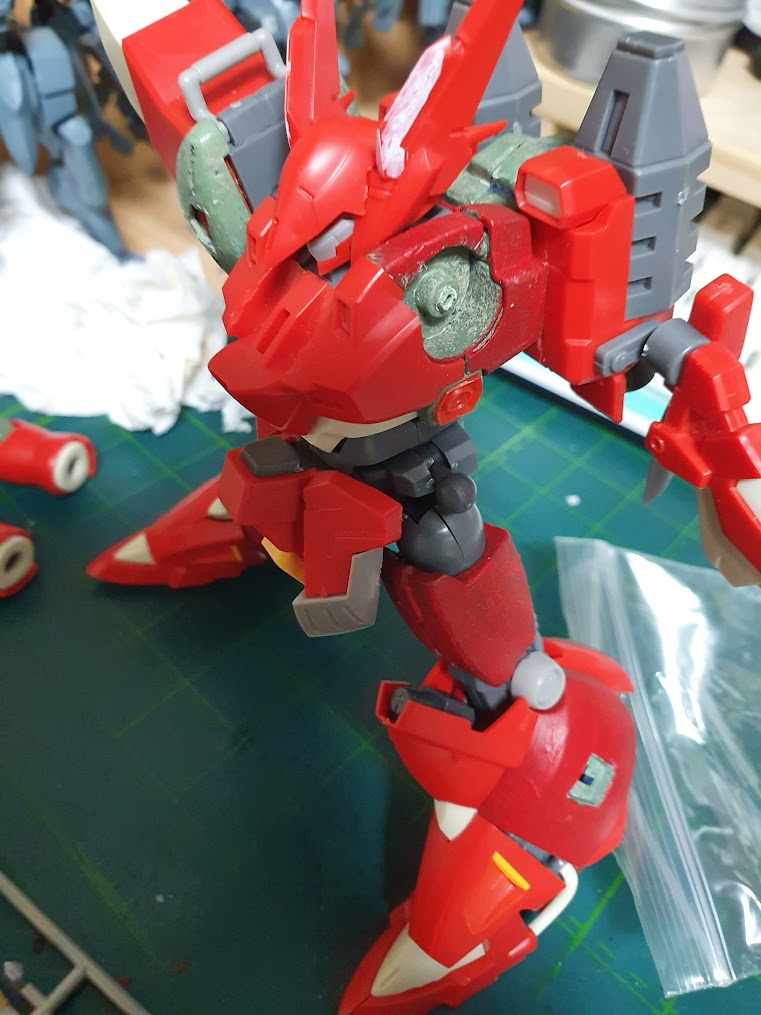 예전에도 말했던 문제의 코토부키야 게슈펜스트Mk2 개량형입니다. 대부분은 아는 분을 통해서 구한 게슈텔벤 여분 부품을 이용할 수 있었지만, 많은 분들이 예상하신 대로 역시 신너에 담갔던 부분에서 기어이 일이 터지고 말았습니다. 그것도 SF로봇 모형에는 꽤 가슴아픈 부분에서 사달이 나고 말았군요(그때 신너만 더 안부었어도...). 일단은 황동선과 타미야 퀵 퍼티로 대충 수습한 상태지만 다른 부품(색칠한 티가 나는 부분)도 이 상태라면 내구도가 의심스럽습니다. 정말이지 제가 그때 왜 그랬나 싶네요...