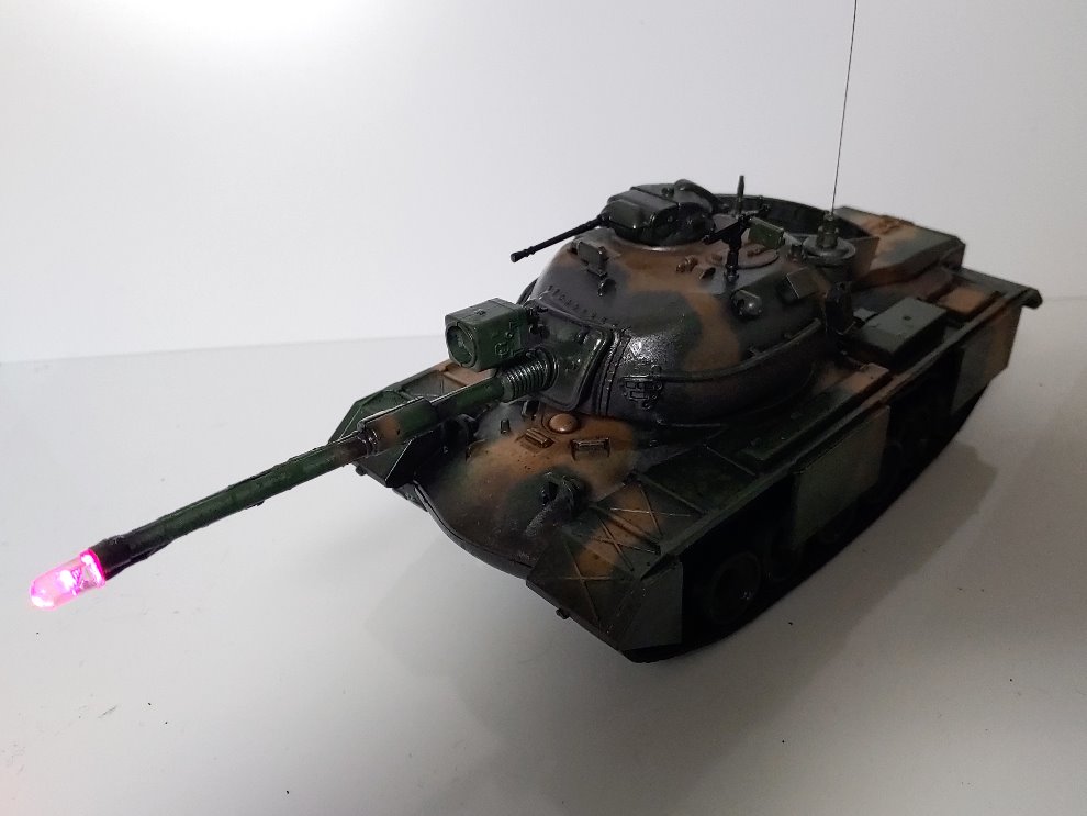 본래 led 있던자리에 끊어 버리고 3-4볼트정도의 led를 포신에 설치 간섭을 없애기위해 차체에 c형태로 구멍을 냄