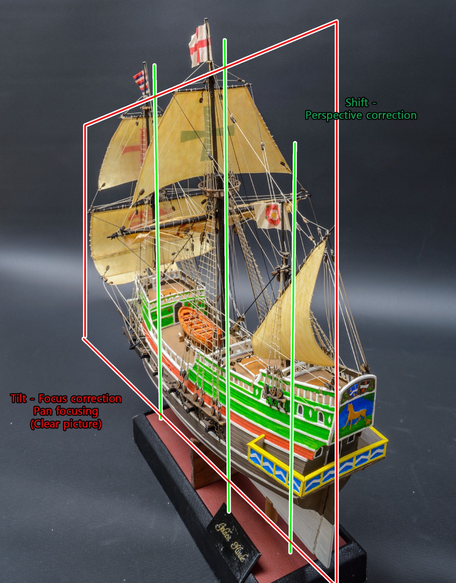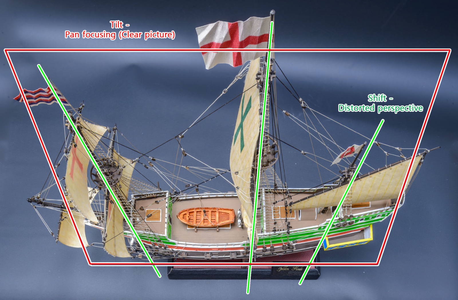밝은 조리개에서도 배 전체가 또렷히 나오도록 Tilt 했고, 돛대가 전부 수직으로 보이도록 원근감 교정을 Shift 로 했습니다.