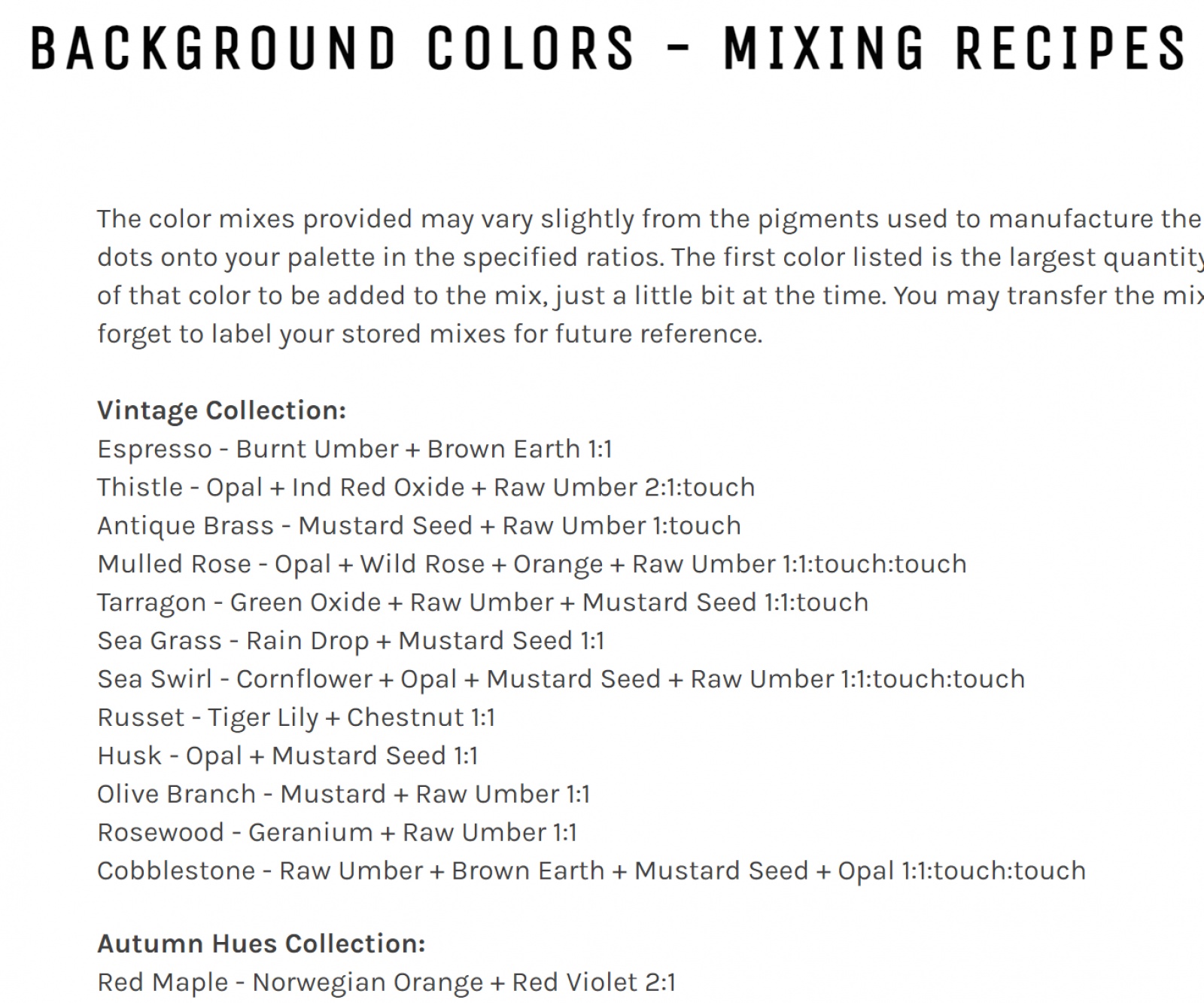 조선자 홈페이지에서도 조합 비율을 공개하고 있기에, 단종된 색상이어도 조선자 물감을 가지고 레시피대로 조색하여 똑같이 만들 수 있습니다.