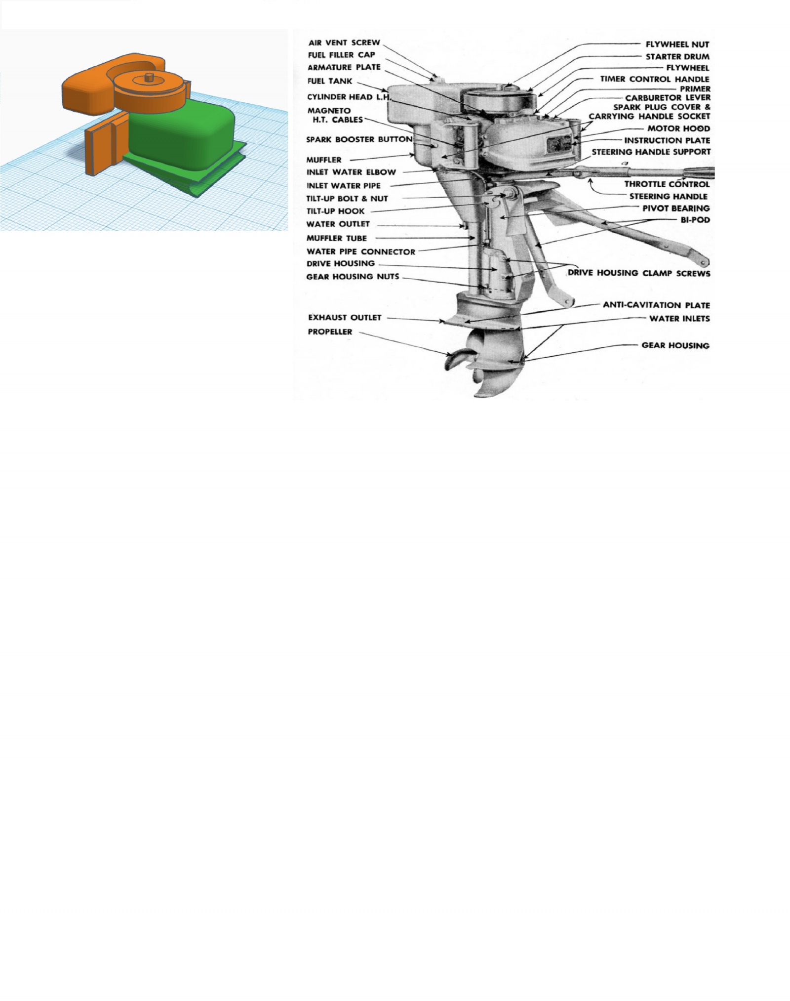 그래서 지금 초등5학년 둘째가 태어날때 부터 보트를 플라판으로 자작 시작했습니다. 당연히 1차 시도 실패. 드래곤에서 나온 독일국 돌격 공병보터 개조 2차 시도했고 실패.한 5년정도 지나고 포기하고 있었는데 어느날 핵 잠수함의 선수 모양이 돌격보트와 비슷하다는 것을 깨닫고 여러가지 잠수함을 사서 어렵게 구한 돌격보트의 도면과 맞춰봤습니다. 정말 기적적으로 중국제 타이푼 잠수함1/350 이 선수가 뒤집으면 1/35 영국군 돌격보트의 모양과 크기가 거의 2-3밀리 정도의 차이만 있을정도로 비슷했습니다. 그래서 보트자체는 비스무레하게 만들어둔게 한 3년됩니다. 그런데 어디서도 영국군 돌격보트에 장착되는 추진모터는 구할수가 없었습니다. 에폭시 퍼티와 다른 기계부품을 조합해서 시도해봤는데 영 원하는 모양이 안나오더라구요. 그리고 장기 숙성과제가 되어가다가..... 첫째가 고등학교에가서 아들의 과학숙제 하기 위해 억지로 3 d 모델링을 해야만 하는 일이 생겼습니다. 하기는 싫었는데 하다하다 보니까 좀 익숙해 졌고 결국............................. 엉뚱하게도 어느새 저는 돌격보트의 엔진을 3d 모델링으로 만들어가게 되었습니다.