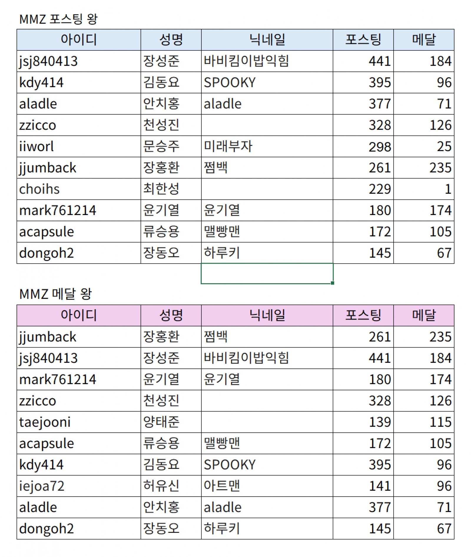 이 분들은 정말 MMZ를 빛내 주신 분들로 작은 기념품이라도 만들어 보겠습니다.