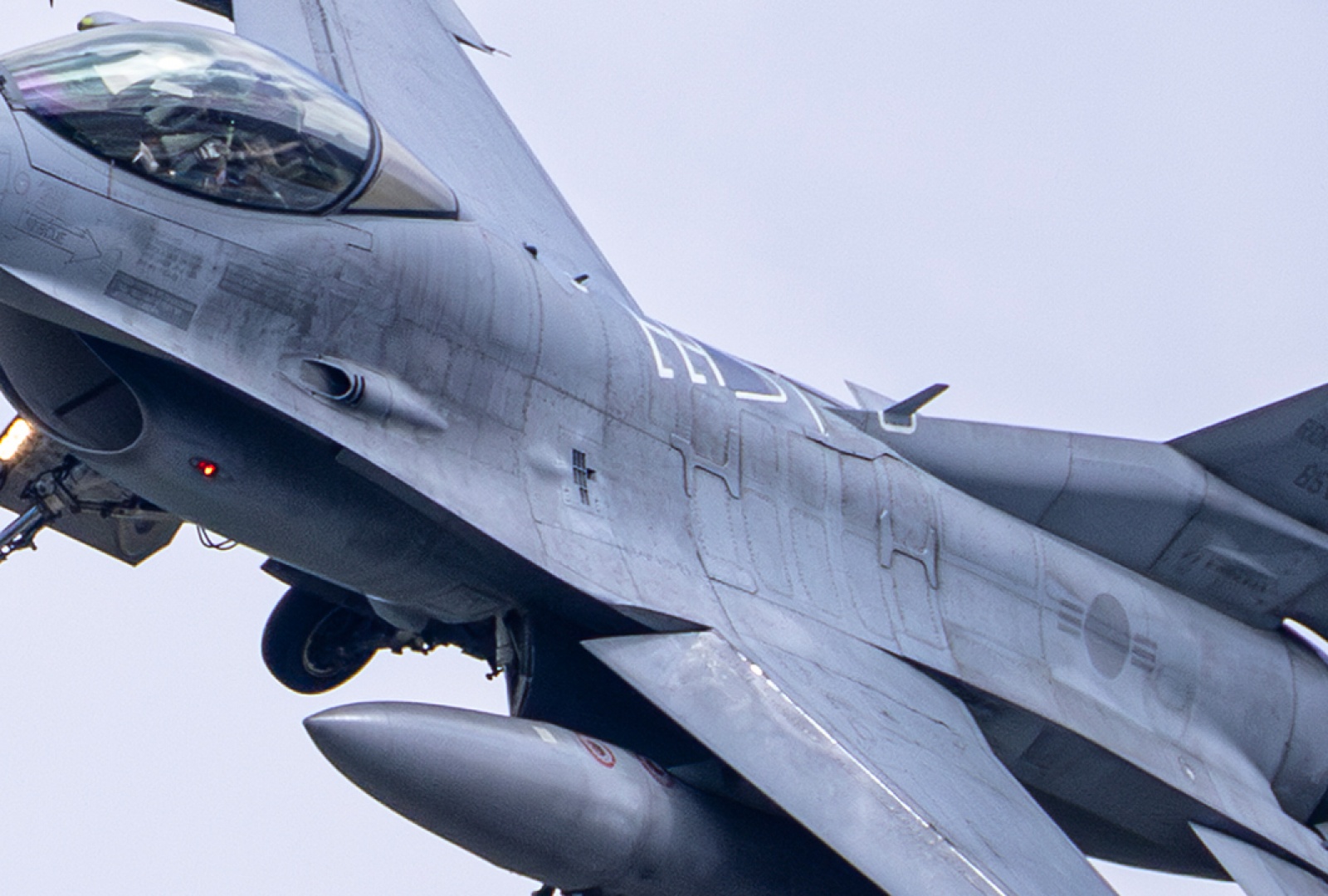 1. 기수 옆 보강판 (KF-16D/UD나 F-16PBU에는 없는 KF-16 단좌형만 붙어 있습니다.). 그리고 RHAWS 안테나 (둥글게 물방울형으로 나온) 도 KF-16C/UC만 레이돔과 같은 회색입니다. KF-16D나 F-16PBU는 기체 위장색과 동일합니다.