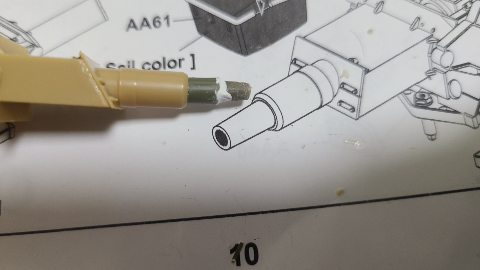 퍼티 및 단차수정을 아예 할 필요가 없이 접착제만 바르면 딱 끝나는 이런 기적의 짜투리 부품이 있다니... 그래서 그걸 자르고 다듬은 후가 저 사진입니다. 물론 포구 구멍은 제 실력 상 디테일이 영 아니지만유.