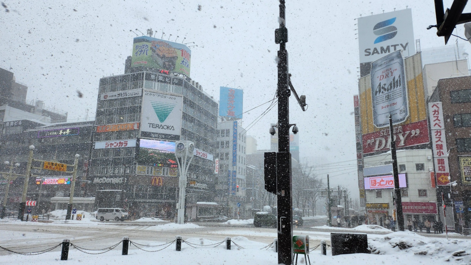 2025년 2월 13일 눈이 많이 내린 "스스키노 역" 사거리.