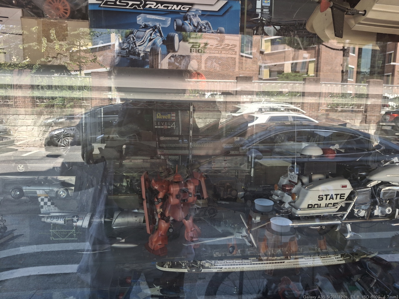가게 안 조명이 밝지 않아서, 밖에서 볼때 작품들이 잘 안보이네요. 전시된 프라들 지금은 못구하는 오래전 모델들도 보이네요.