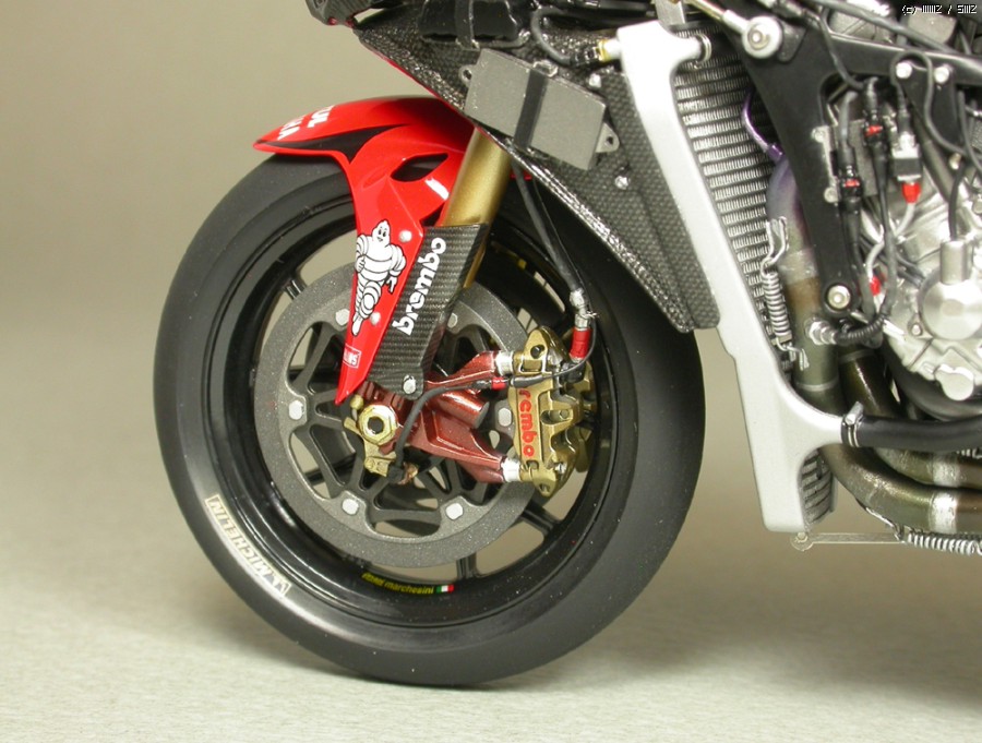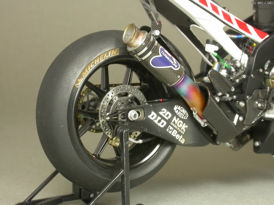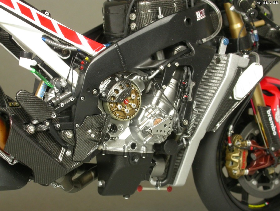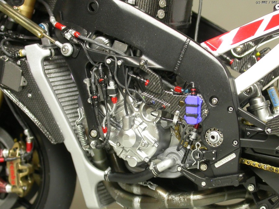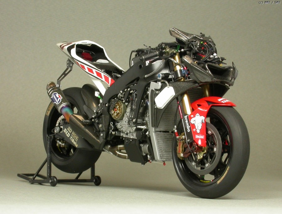 TAMIYA 1/12 YAMAHA M1을 기본킷으로 사용했고, TOPSTUDIO의 디테일업 세트와 체인 세트를 사용했습니다. 카본데칼은 KA MODELS 것을 사용했습니다.
