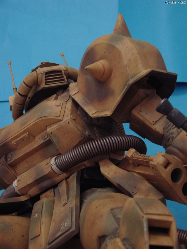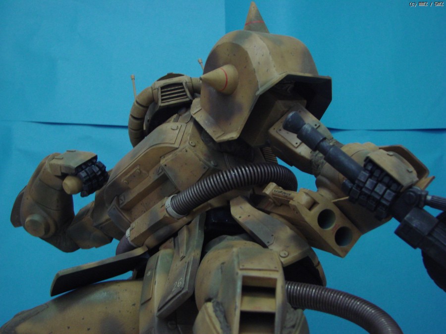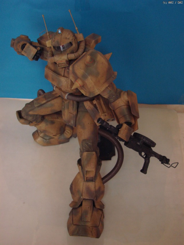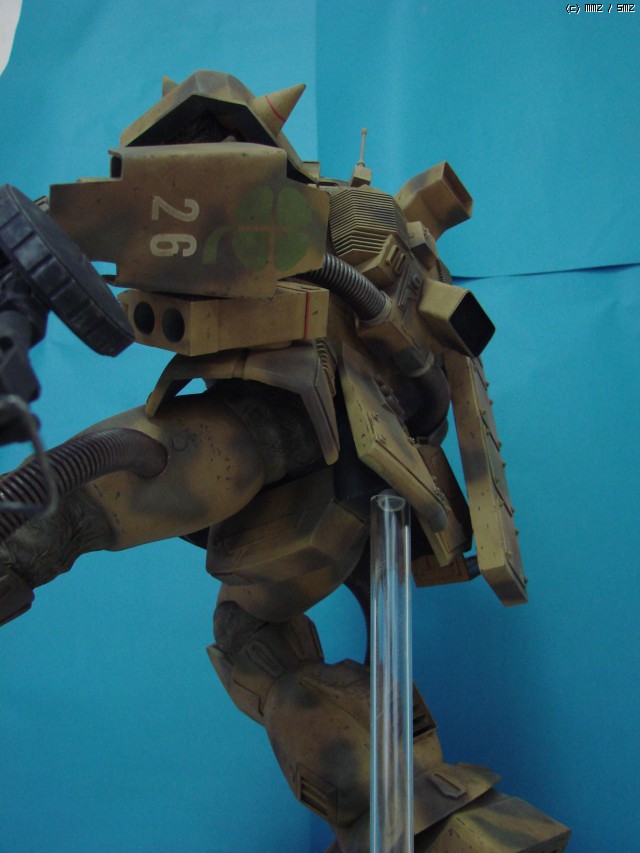 이 데저트자쿠는 작년 BAKUC대회에 출품했던 건데...의욕과 실력이 따로 노는 관계로 여러가지로 어정쩡한 물건이 되고 말았습니다. 예선은 대회 출품작이 적었던 덕분에 어찌어찌 간신히 통과는 했는데...역시나 본선에서는 짤 없더군요. 뭔가 어정쩡한 자세에 불안한 무게중심, 일부 자작부품의 볼륨 언밸런스(특히 어깨 스파이크)등등의 문제를 지적받았는데, 만들 때부터 저 스스로도 마음에 걸리던 부분들이니 뭐라고 할 말도 없더군요. ^^;