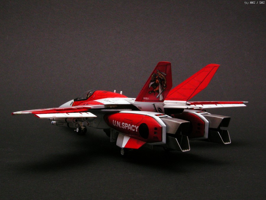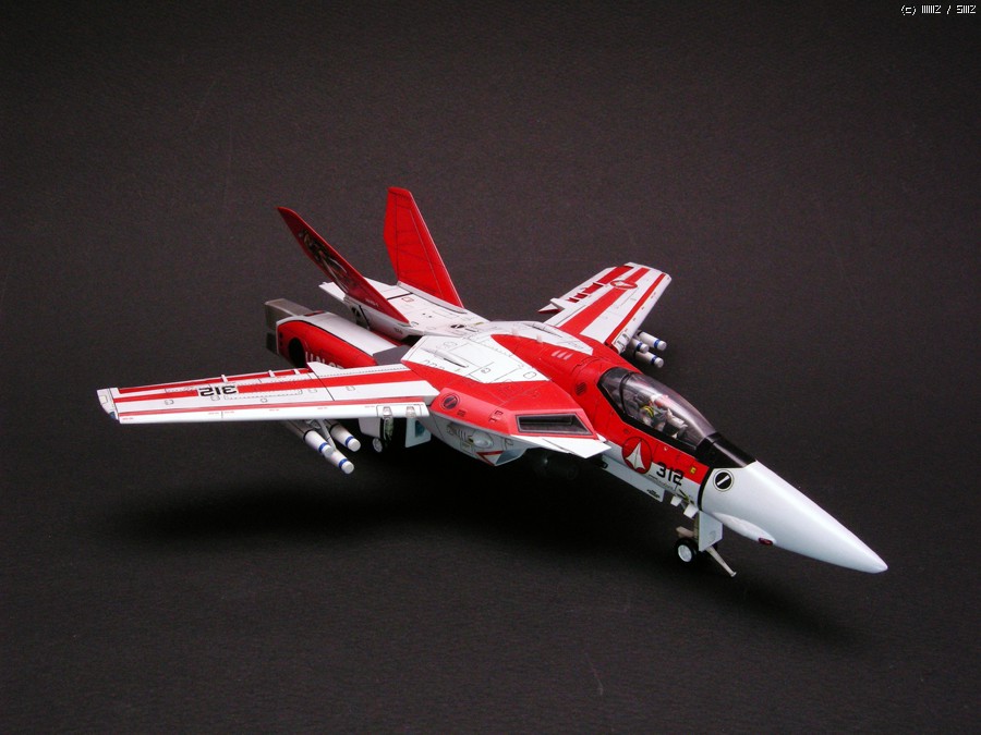 J형 발키리입니다. 아마도 제일 많이 나돌던 S형에다가 다른 킷에 들어있던 여분의 J형 머리를 붙였던거 같습니다. 도색은 맘대로고, 수직미익의 데칼은 홍콩 어딘가의 메이커에서 나온 별매 데칼입니다. 마크로스용 데칼이 아니라 건담용 데칼이었던듯 한데.... 어쨋든 '발키리'이기 때문에 여기다가 붙여봤습니다. 무장은 별매 무장세트에서 가져왔습니다. 역시 하세가와~~ 이런 걸 다 별매로 팔아먹다니...