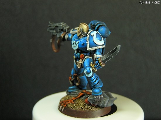 이번에 거의 일주일간 칠한 스페이스마린입니다. 울트라마린 챕터의 마린이라 파란색입니다..^^ 도색하는 방법을 바꿔봤는데 첨이라 힘들기만 했네요..ㅜㅡ 얘네들은 타이라니드 헌터라고, 저그랑 이미지가 비슷한 워해머 세계의 괴수들을 잡는데 특화된 병종입니다..