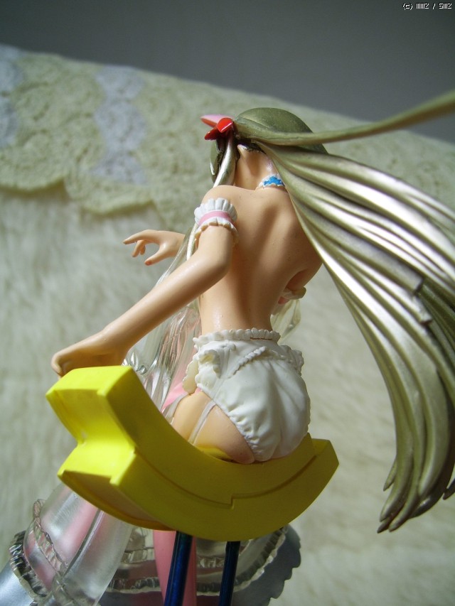 달 위에 걸터앉은 여신이 잠자리에 들려는 것인지 드레스를 벗어서 팔에 걸치고 있는 자세입니다. 그런데 고개가 너무 앞으로 숙여져 있더군요. 아마 스탠드를 이것보다 더 높다랗게 해서 하늘위에서 아래로 내려다보는 자세로 만들어야 제대로 된 디스플레이가 되는 모양입니다.