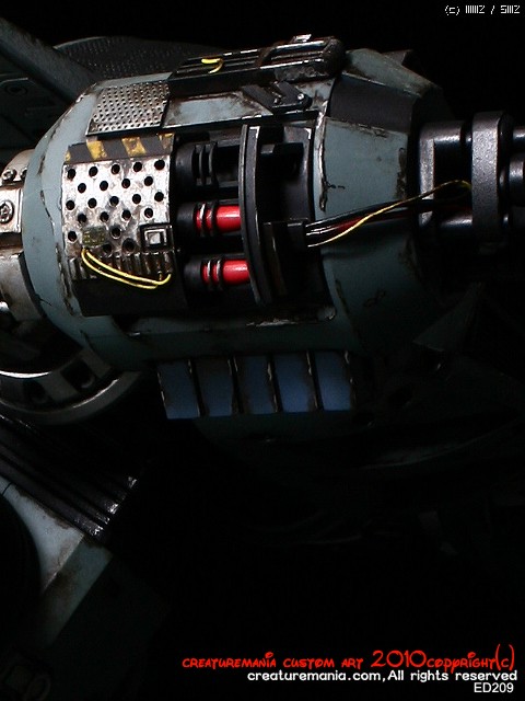 제품의 일부분을 개조를 해 주었는데 이는 영화속 더미와 다른 부분이 있어서 그렇게 수정 하였습니다. 수정된 부분은 발 뒷부분의 안쪽 비어 있는고과 머리 부분의 카울부분 허리부분의 고무부품의 디자인을 다시 수정하였고 발 부분의 피스톤 부분도 스텐느낌으로 수정해 주었습니다.