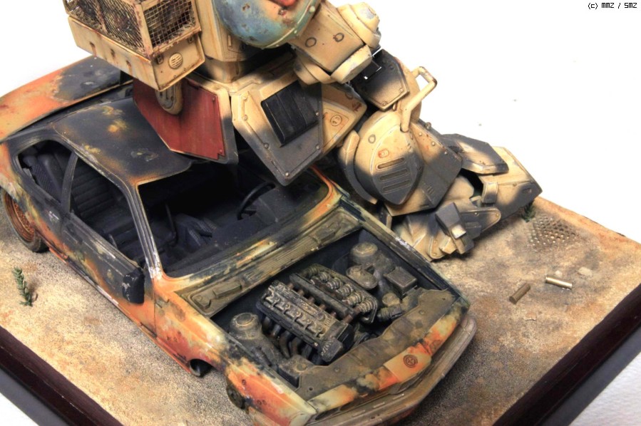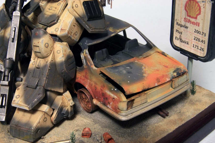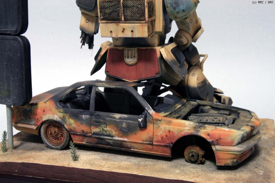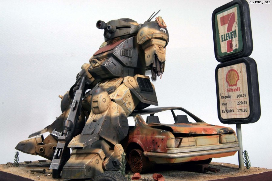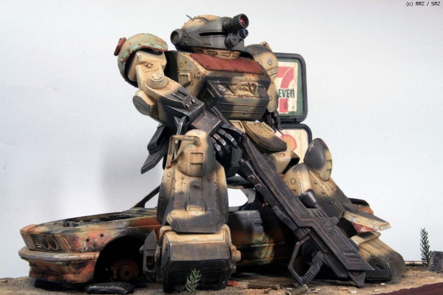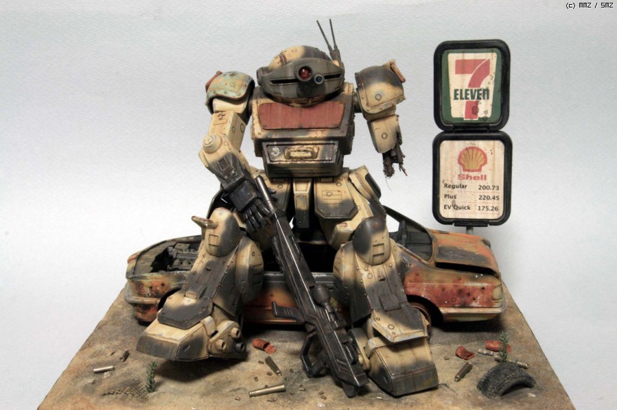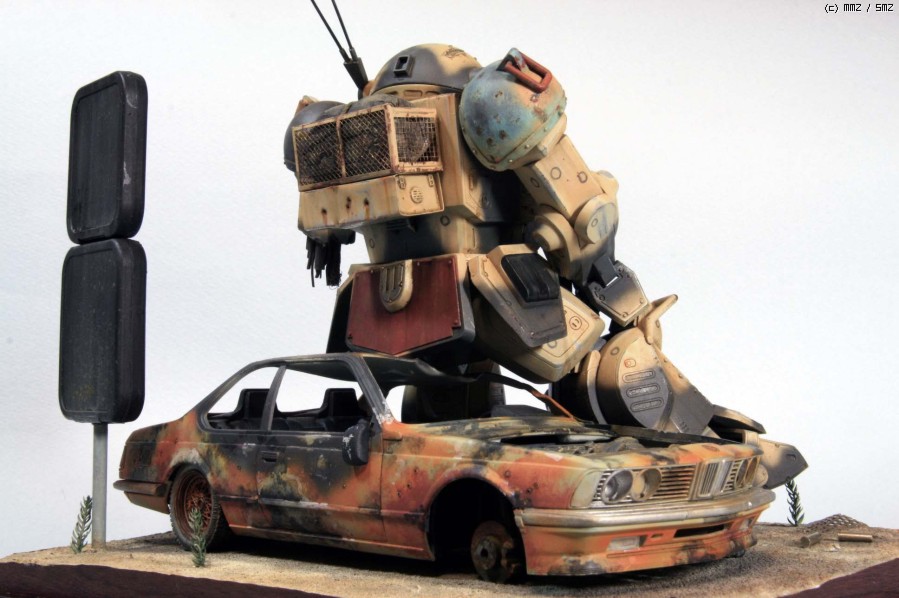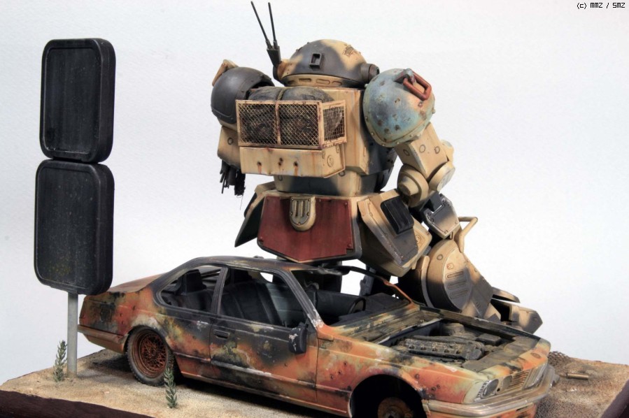 보톰즈 킷은 Wave제로 요즘 나온 반다이에 비하면 워낙 오래된 물건이고 디테일도 약간 떨어집니다만 프로포션은 훨씬 좋다고 생각합니다. 몇군데 손만 보면 오히려 더 '보톰즈' 다워 지지요. 로봇 병기 중에서 보톰즈가 제일 있을 법해 보이지만 그래도 이족 보행은 정말 비효율적인것 같습니다. 깔고 앉은 자동차는 마트에서 흔히 볼 수 있는 아카데미 BMW인지라 부담없이 불에 지지고, 휘고.. 아카데미 만쉐이.