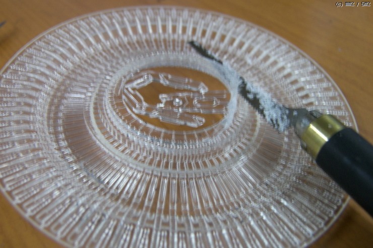 1. 서페이서후 양각의 로고에 화이트색상을 뿌린상태입니다.
