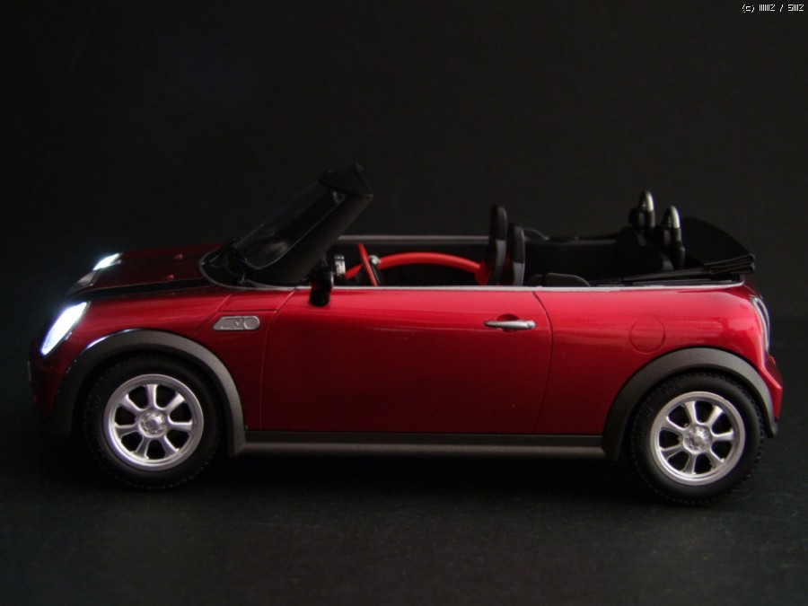 사실 메탈릭도색과 광빨이 좋다는 우레탄클리어를 시험삼아 해보려고 선택했던 킷입니다. 망쳐도 큰 부담이 없을것 같다는 생각으로 작업을 시작했는데, 그래도 나름 미니컨버터블 실제 사진도 참고해서 보넷부위 줄무늬도 넣어보고 헤드라이트에 LED도 심는 작업도 해봤습니다.