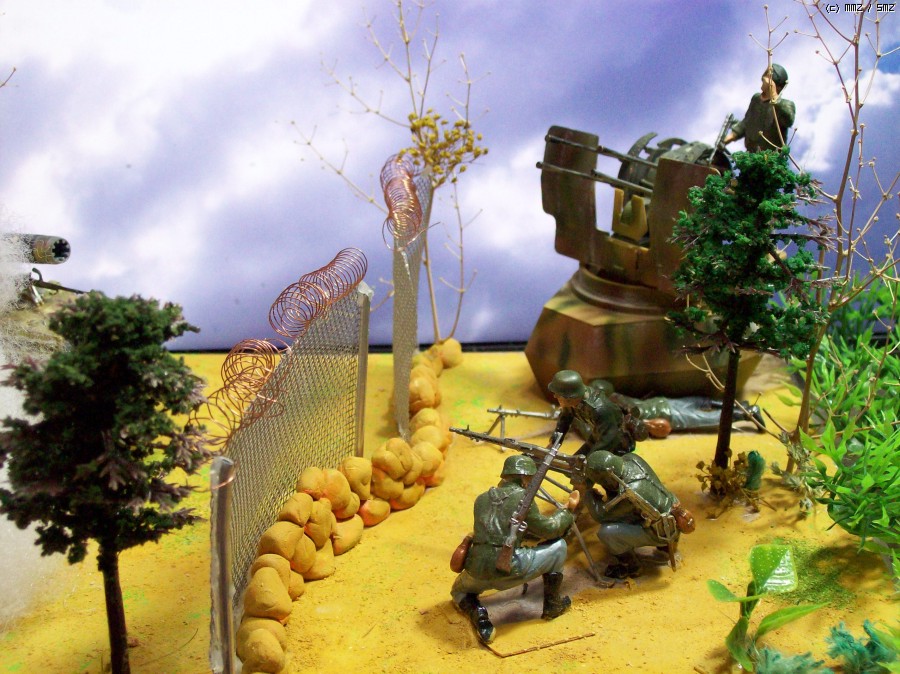 지점토로 철조망앞 표현