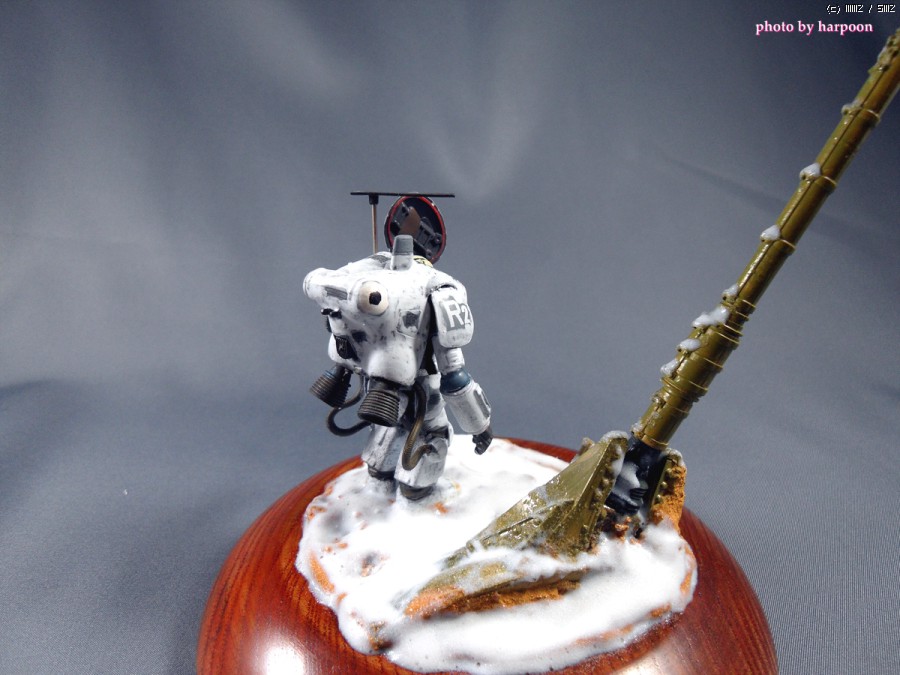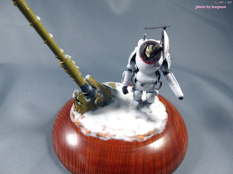 옐로우 서브마린이라는 곳에서 발매된 1/35 Ma.K.Fireball을 이용해서 간단한 겨울풍경 비넷을 만들어 보았습니다. 원래 도색이 된 상태로 발매된 완성피겨로 군제 락카 화이트를 이용 동계위장 분위기가 나게 표현해 보았습니다. 붓으로 좀 러프하게 도색하고 무감 마감재 올려 주었습니다. 베이스는 마트등에서 발매하는 목재식기를 뒤집어서 사용했습니다. 1/35 아카데미 메르카바의 포신중 주포 부분을 잘라서 땅에 박힌 표현을 했구요. 눈 표현은 목공본드와 G코트 눈표현재를 혼합해서 발라 주었습니다. 감사합니다.