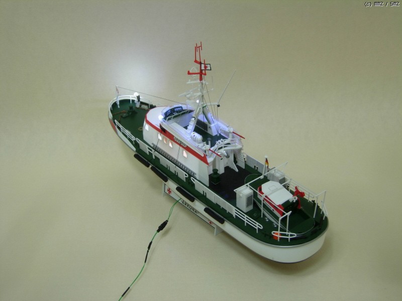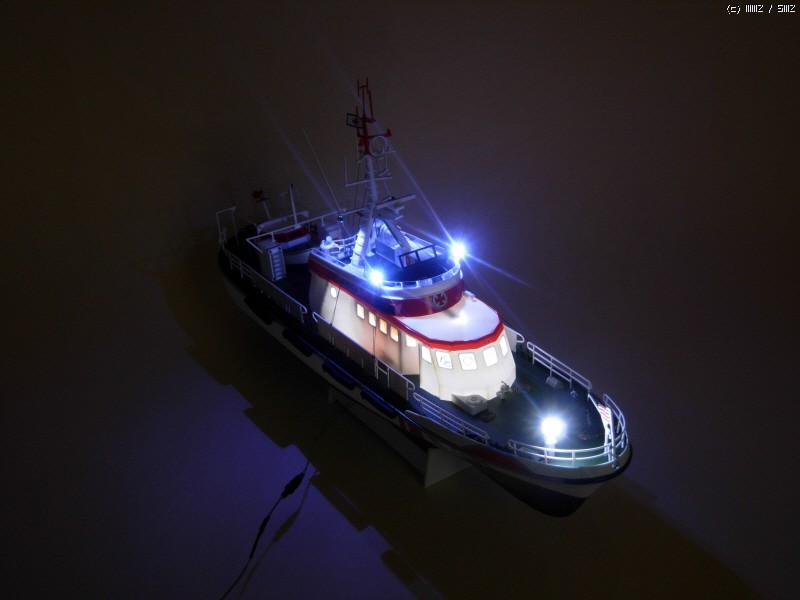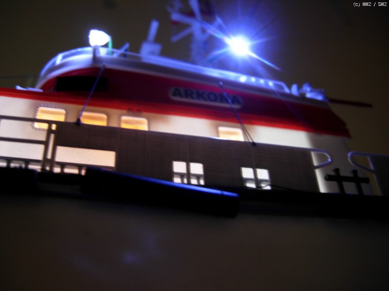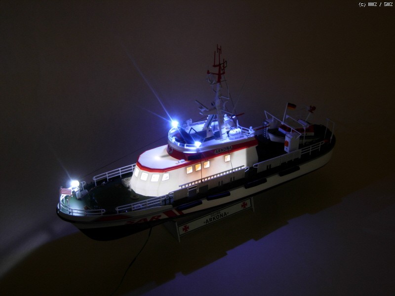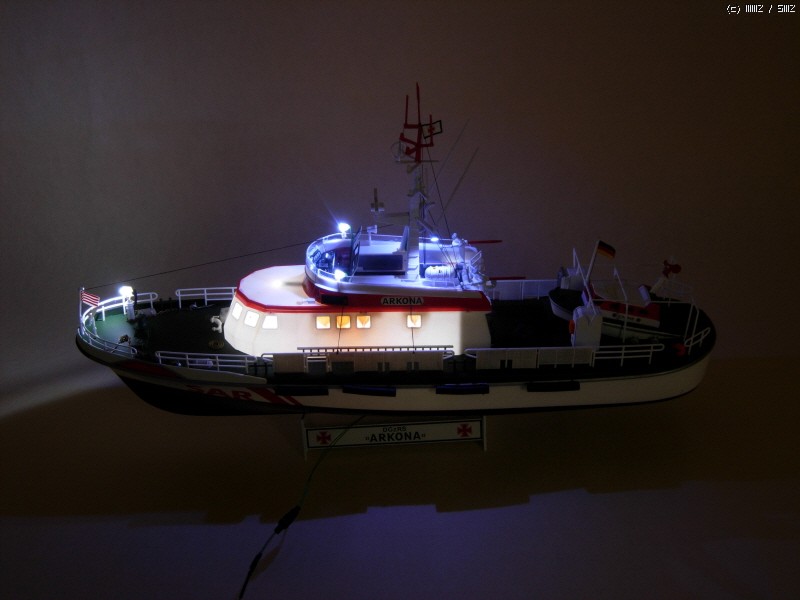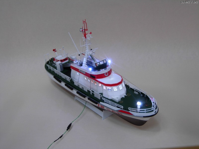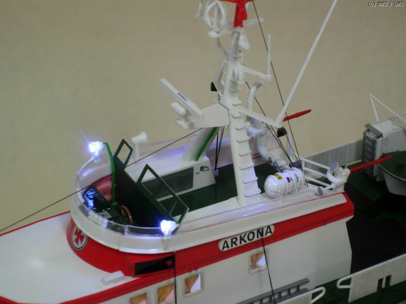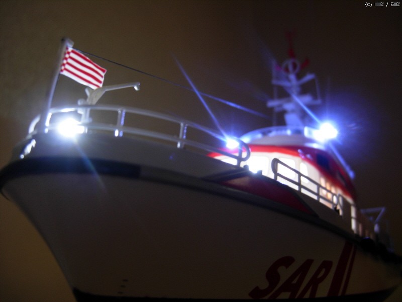 마스트 양 옆의 검정 사각형 모양의 탐조등은 프라판으로 제단해서 만들고 내부에 1608 칩LED 를 넣어서 자작 했습니다.