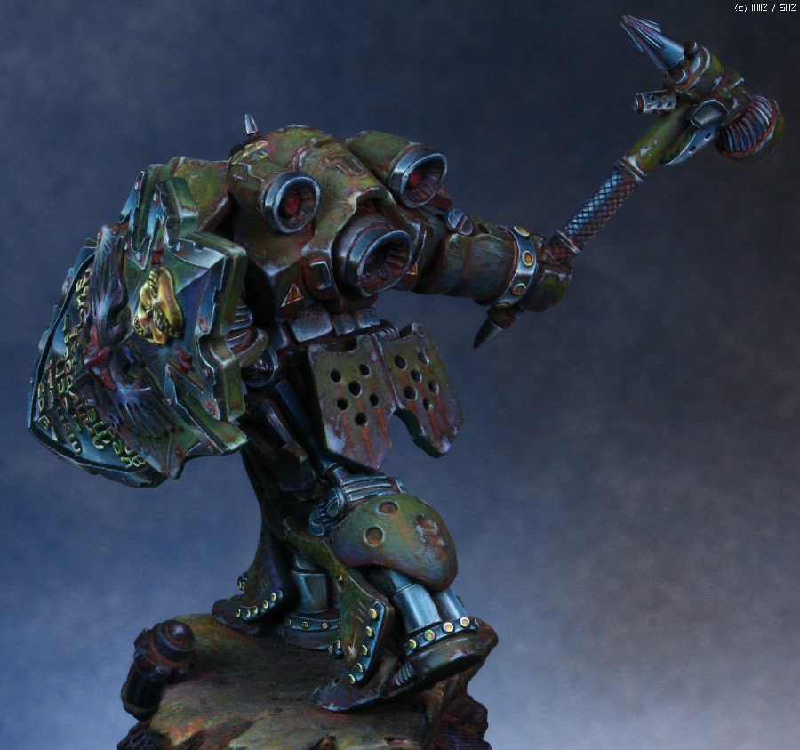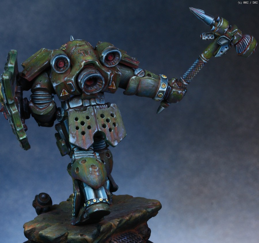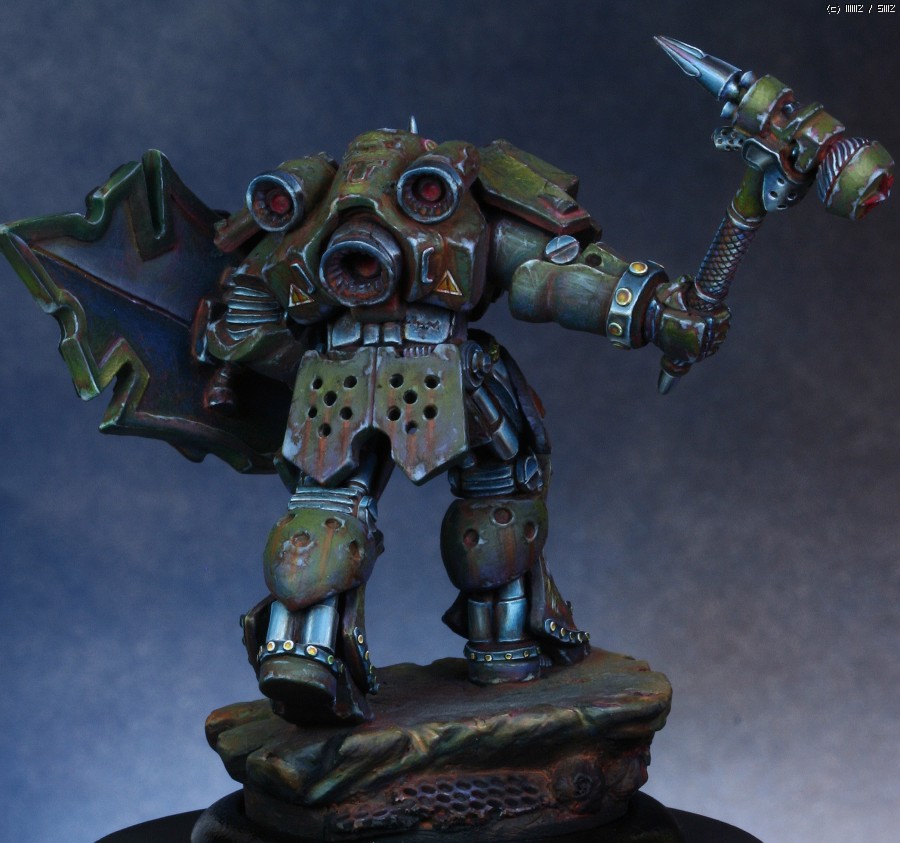 워해머의 스페이스마린을 모티브로 디자인한 'Human Tank Arkady'라는 판타지 케릭터입니다. 지난번에 NMM을 적용해서 페인팅했던 판타지 인형과 같은 메이커의 박스아트용으로 작업했습니다.