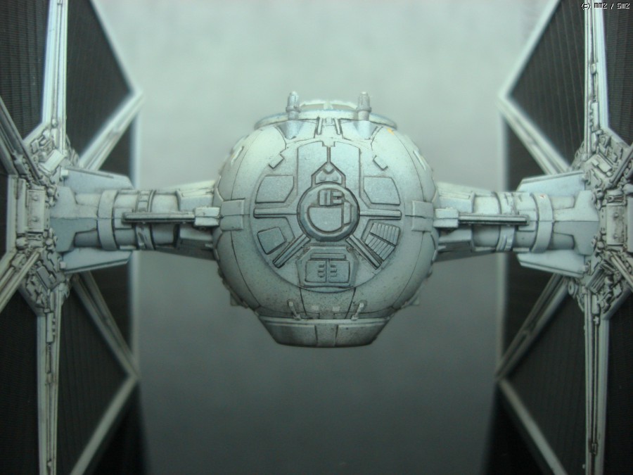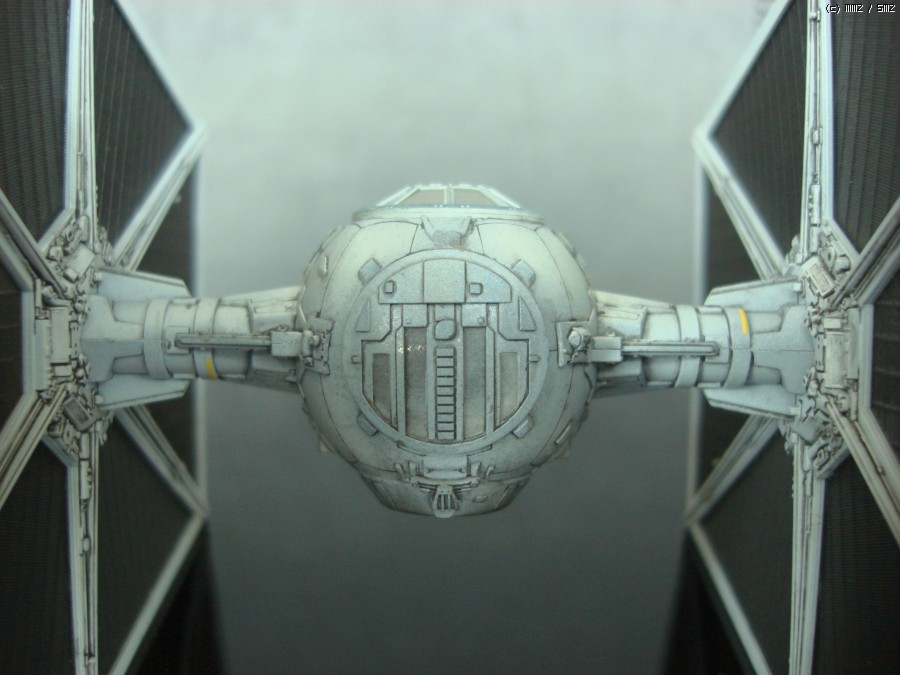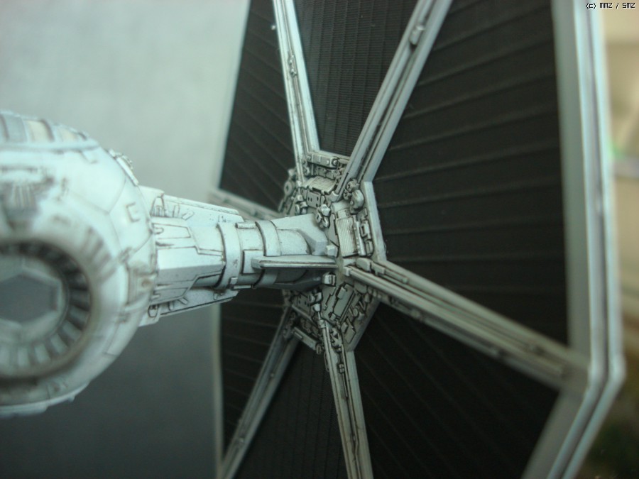 타이 전투기의 가장 큰 특징인 태양열 전지판 날개 디테일 입니다. 파인몰드사 다운 빼어나 디테일을 보여주고 있습니다. 검정 에나멜을 묽게한 워싱으로 먹선을 넣어주어서 음각과 양각의 조화가 연출하는 디테일을 더 돋보이게 해주었습니다.