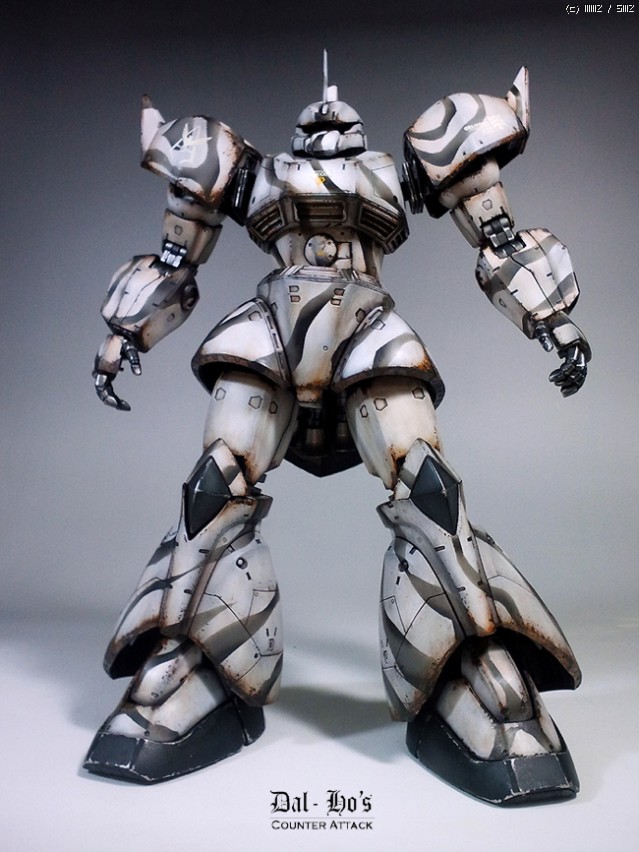 디오라마의 설정은 음...차가운 설원속에 허우적되는 두 악성재고들의 처철한 몸부림(?)으로,한랭형 MS를 어떤식으로 도색 할까 고민하다, 애니 보톰즈의 '페르젠 파일즈'에 나오는 동계위장에아이디어를 얻어 이런 시도를 해봤습니다만..위장은 커녕 눈에 더 잘 띄지 않겠나 싶기도 하네요.