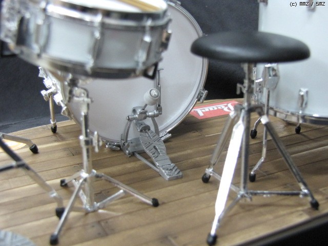 러그는 도색부분을 갈아 하나하나 붙여주었습니다.심벌에 질젼로고는 세필로 써넣었고,베이스 드럼 pearl마크는 스텐실 작업했습니다.