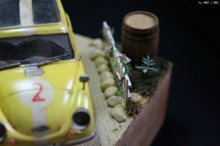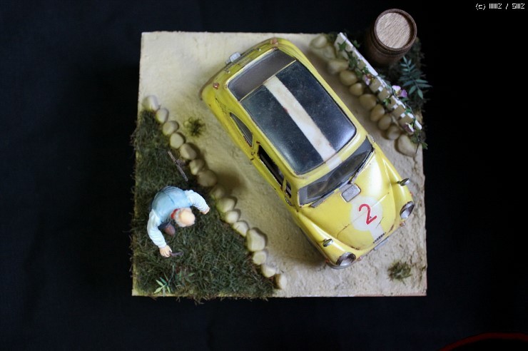 처음엔 차만 한대 달랑 만들려고 생각했었는데...기술협상을 잘 못한 결과로 요구사항이 점점 늘면서 "깔끔한 차량 -> 약간 먼지 앉은 차량 -> 작은 받침대(비넷을 의미하는 듯) -> 인형도 한마리 -> 배경도 추가해!"