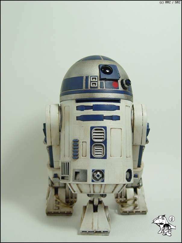 평소 서페이서 사용을 하지 않는 편인데, 소프트비닐에 아크릴 도색은 잘 안 마르고 끈적거린다는 이야기가 있어 서페이서 사용도 하고, 타미야 아크릴도색에 유화물감으로 웨더링 정도만 하고 덜코트 무광 마감했습니다. R2D2 눈 부분만 마감후 아크릴 유광도색 해서 조금 광이 납니다.